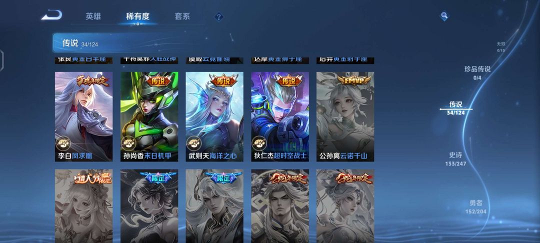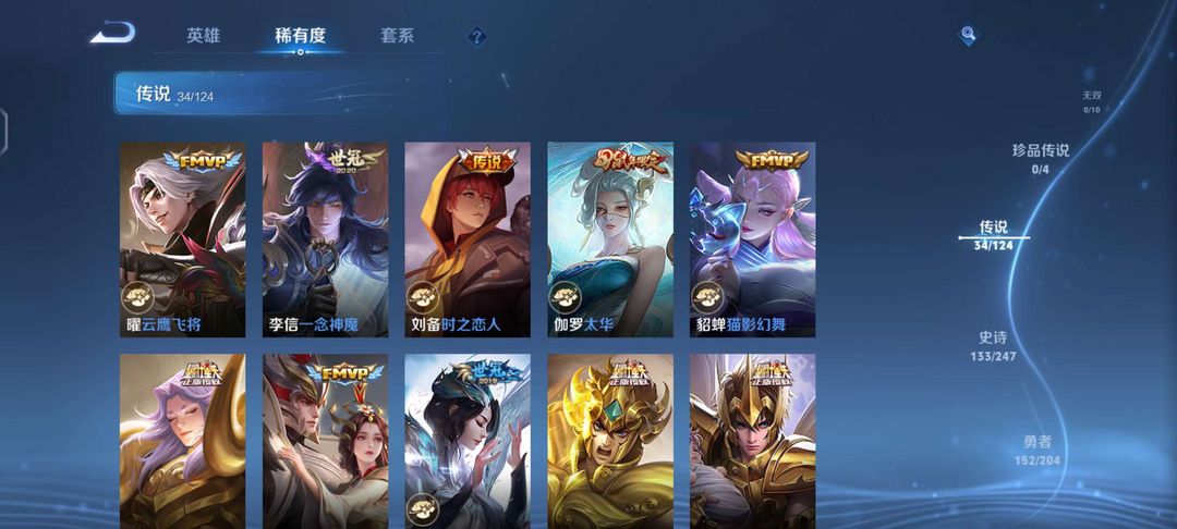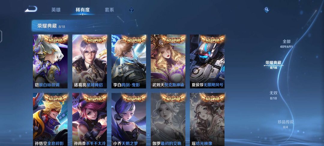 v10、537皮6水4无双、安琪拉-颠倒童话·魔镜、朵莉亚-神骥、遇见神鼓、齐天大圣、白虎志、韩信荣耀典藏、73传说、时之魔女、瑶无双、青丘、九尾、神器明辉仪