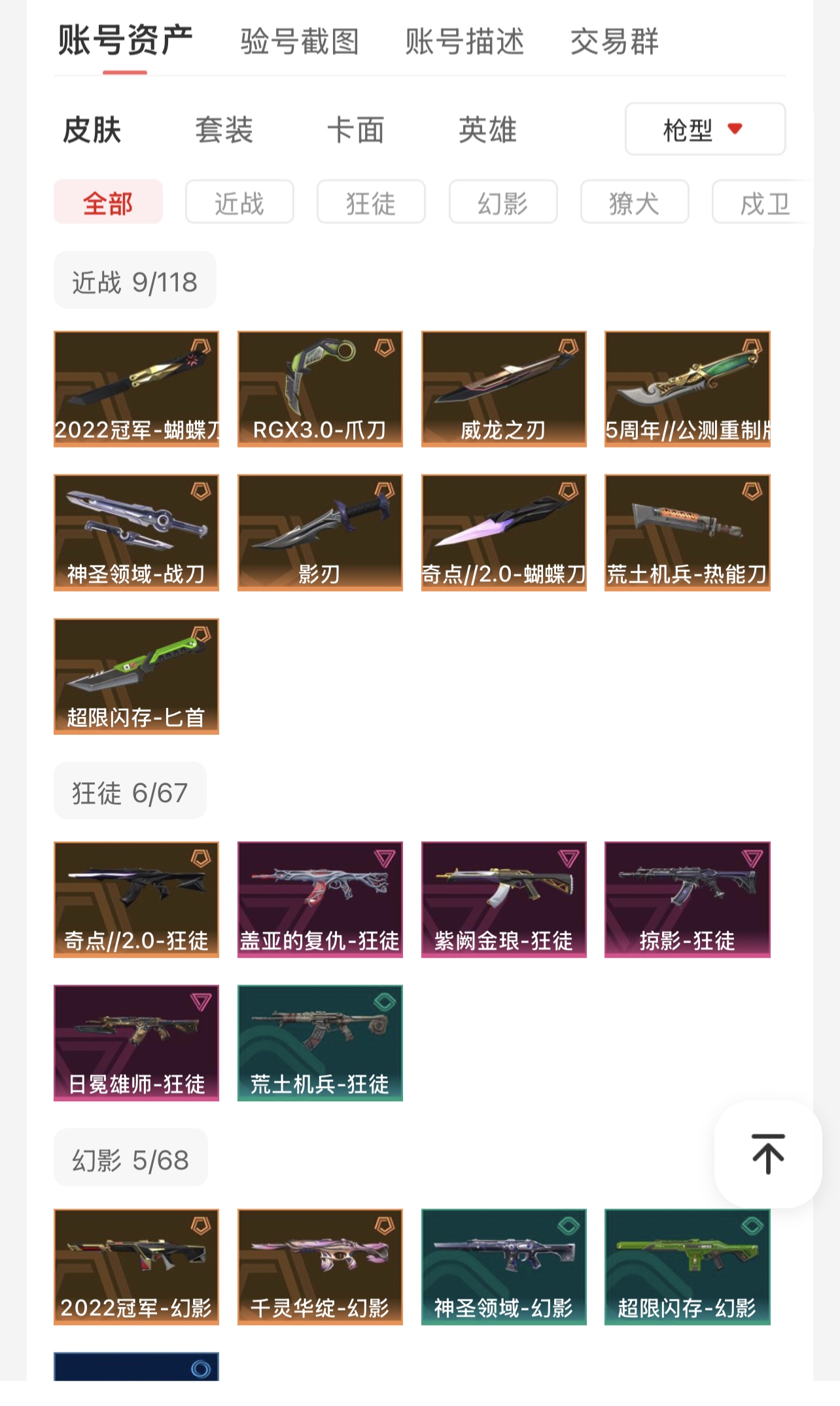 首页 > 租号大厅 > 无畏契约-wegame > wegame/wegame > 已备案禁止开挂❤️8万库存22冠军套苍龙之刃❤️奇点掠影套显卡爪刀威龙奇点蝴蝶刀❤️盖亚紫金狂徒千灵