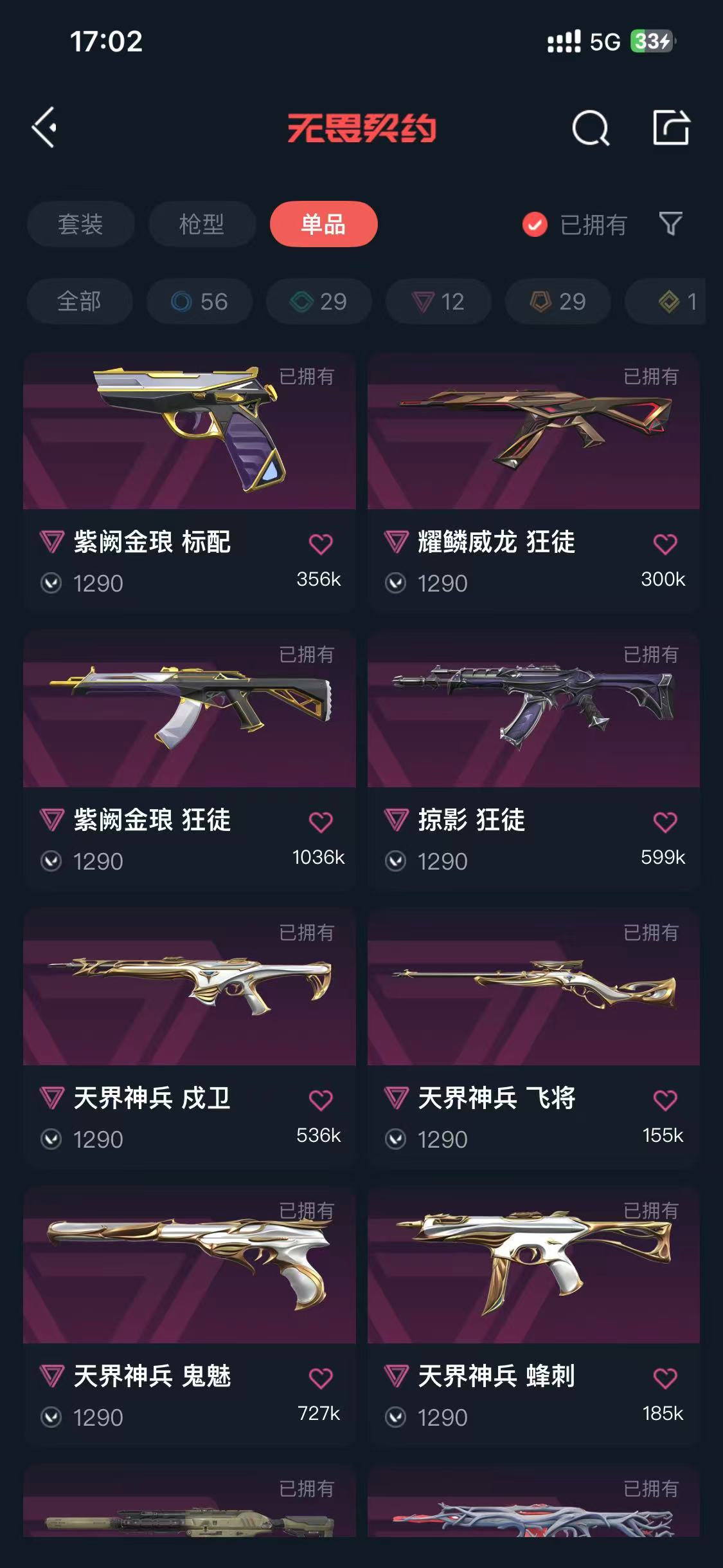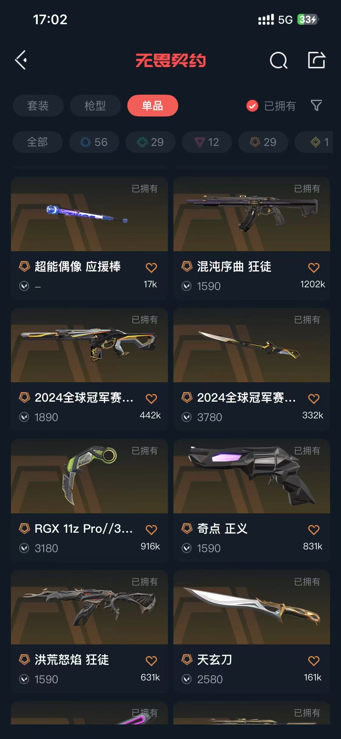 7.5w库存❤ 16把狂徒皮肤 ❤252224冠军套❤天界套❤离火显卡爪奇点蝴蝶威龙刃❤VCT24