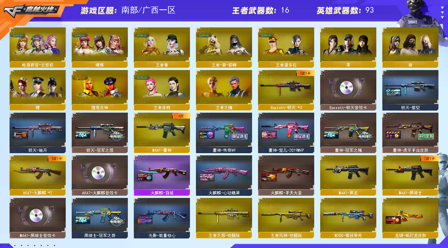 105v-传说幽瞳-传说破晓-传说夜影-幻神-幻神宠儿-幻神n9-幻神冠军之幻-幻神白鲨-幻神黄忠-竞技荣光-朱雀-白虎-qbz金色蔷薇-毁灭-王者风神-6烈龙-usp雷暴-cop堕天神-柯尔特竞技荣光-cop云龙-冠军之特-屠龙-龙啸-擎天-麒麟刺-炽芒蝶刃-云悠悠-晴雅-黑骑士音效卡-毁灭音效卡-火麒麟音效卡-龙啸纸灯笼-屠龙AG-qbz巅峰荣耀-冠军之击-雷神宠儿-毁灭AG-麒麟刺白鲨-雷神n9-冠军之势-雷神虎牙-冠军之怒-冠军之魄-USP冥王-荆刺 请看截图 喜欢请点收藏 方便下次租 可以当成自己号玩【感谢老板租此号】优质账号 如果有个别装备到期 影响不大的情况下请不要维权,如遇到账号密码错误 顶号 冻结 请直接维权即可, 科技大佬麻烦看了请绕道,出zu不易,给你跪下了!;USP-雷暴,柯尔特-冠军之特,炽芒蝶刃,电竞教官-云悠悠,晴雅,QBZ03-金色蔷薇,传说幽瞳,