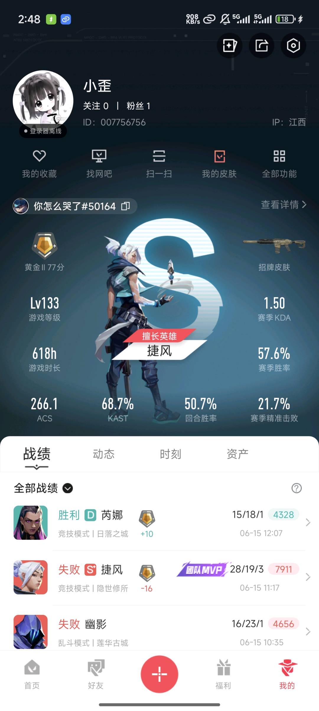 • 游戏区服:无畏契约-wegame / wegame / wegame