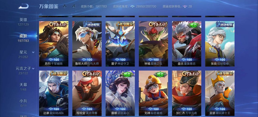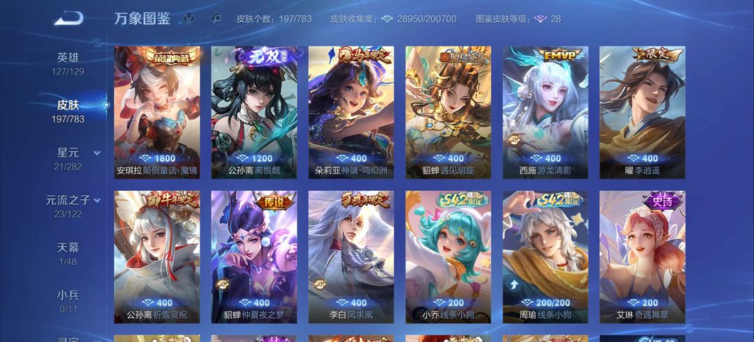 【非云直上】537满皮满典藏12星元◎鲁班新皮◎虞姬星元◎天使星元◎白金战神◎妲己绝版星元