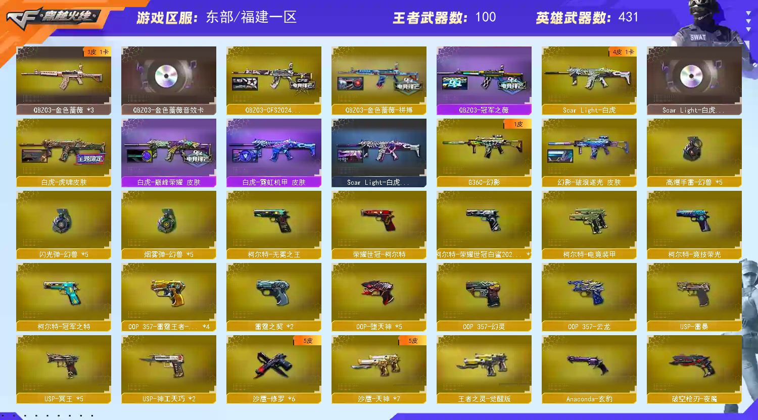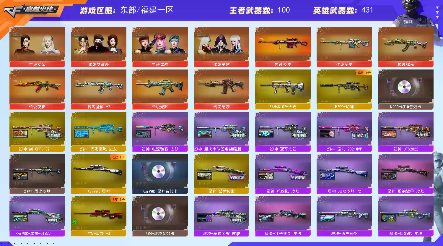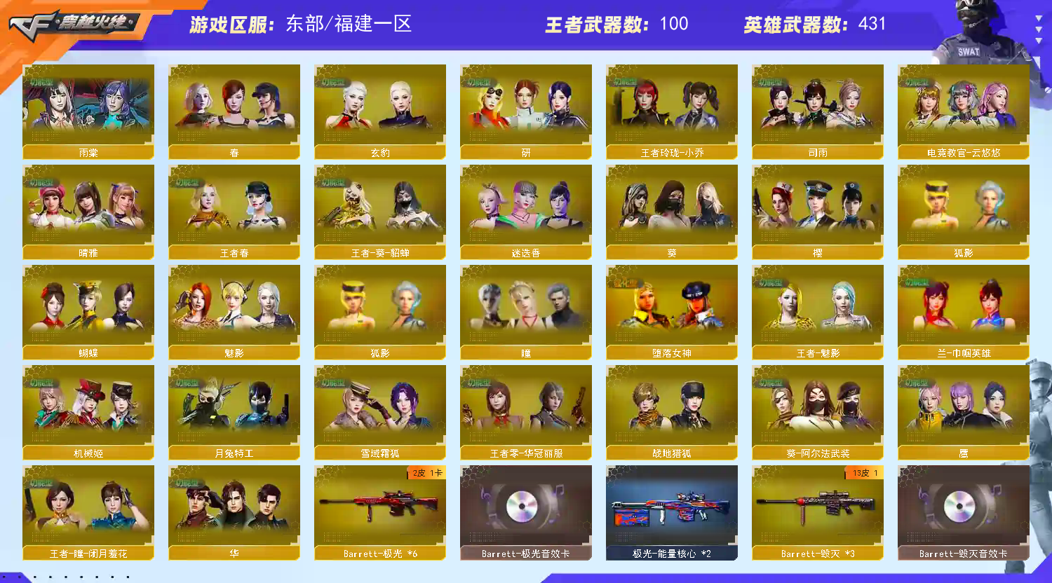首页 > 租号大厅 > 穿越火线 > 电信区/福建一区 > 光海夜岚5冥王7玄豹烟5幻兽套十周年雷神拼搏套/4花聚顶圣域星骇/天戎G36C幻神8皮满副手满音效卡