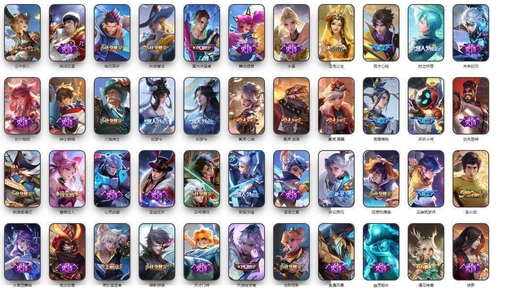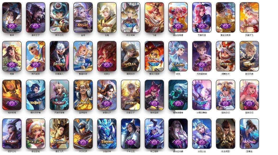 v10、12水555皮、死亡执政官、刘备星传说时之思念、小兵皮肤大耳狗甜茶、瑶无双真我赫兹、愿照·九州拓、怪盗基德、画中仙、至尊宝、凤求凰、神威、天魔缭乱