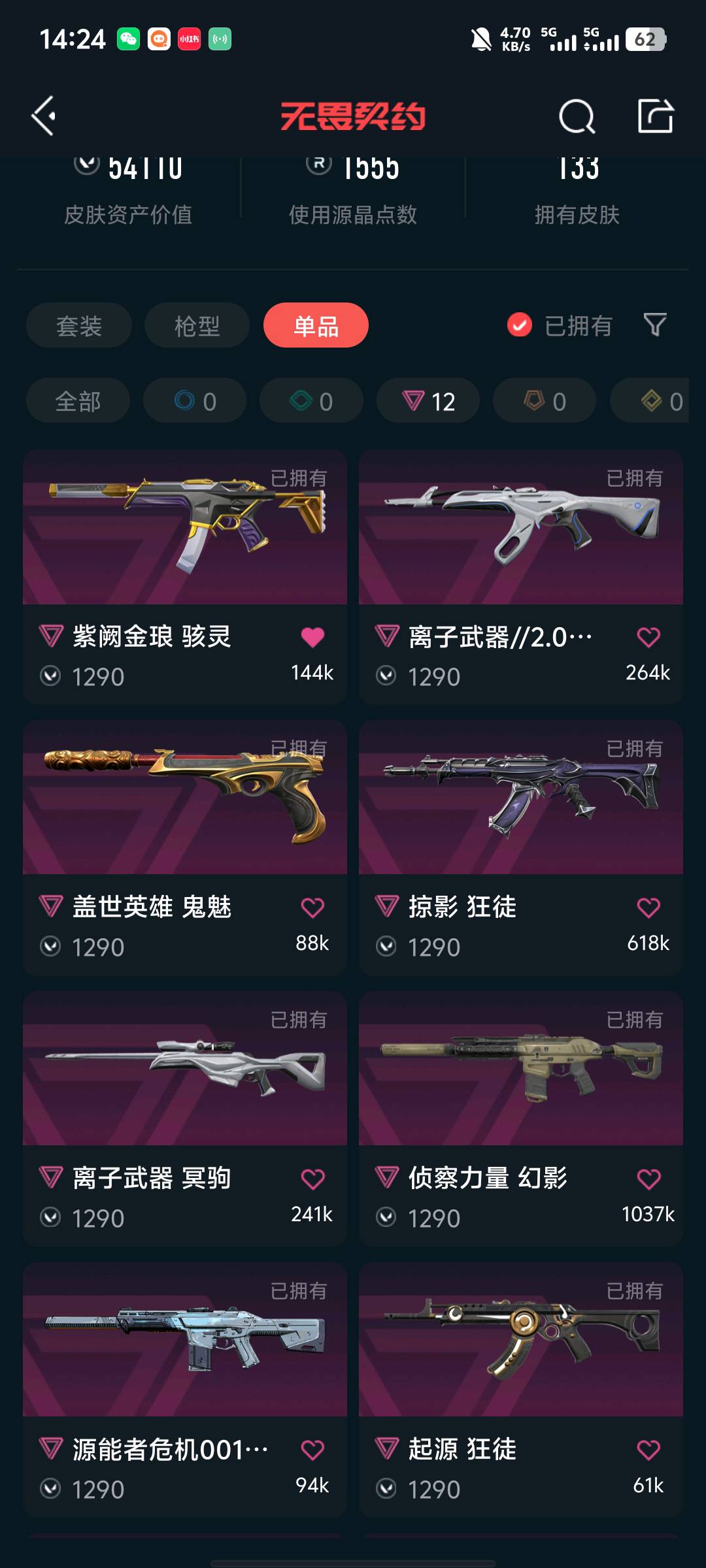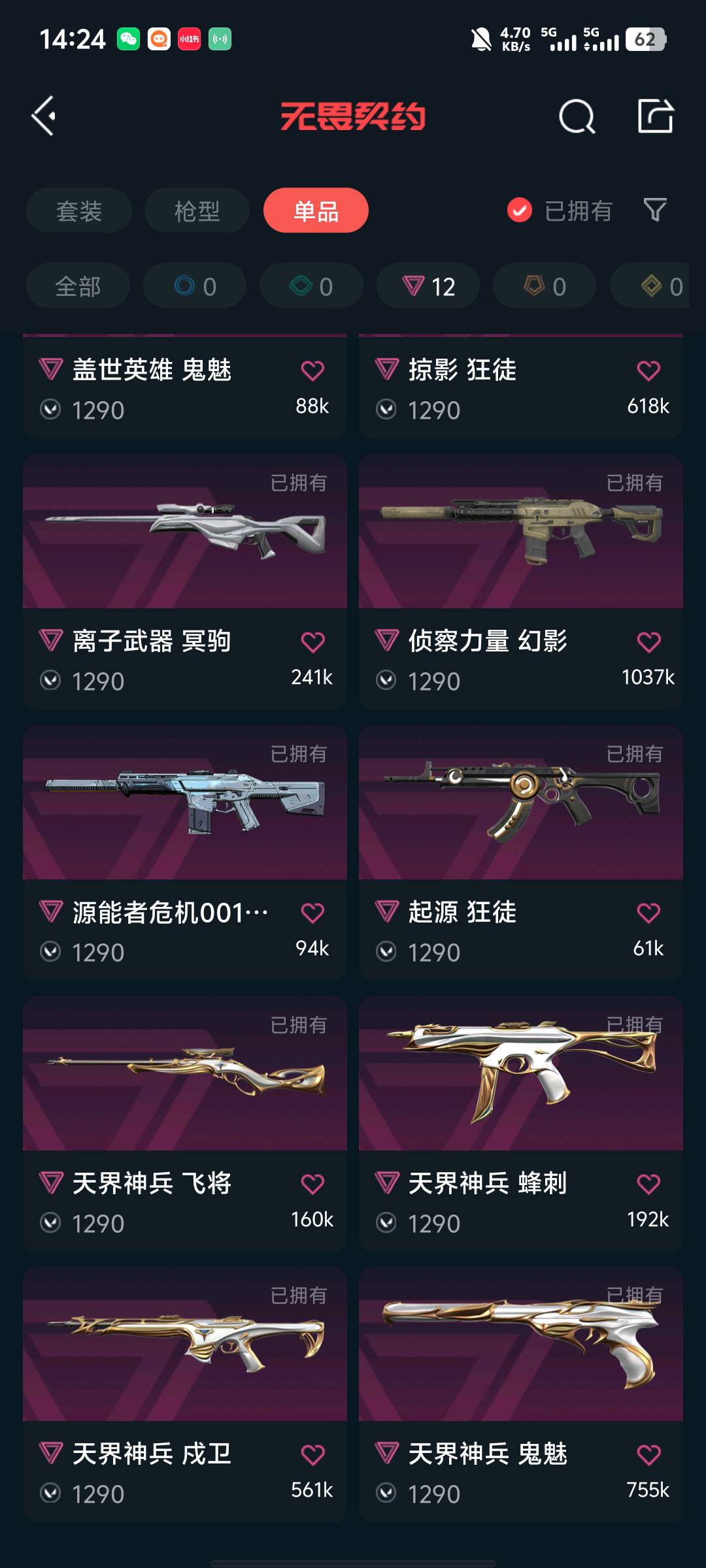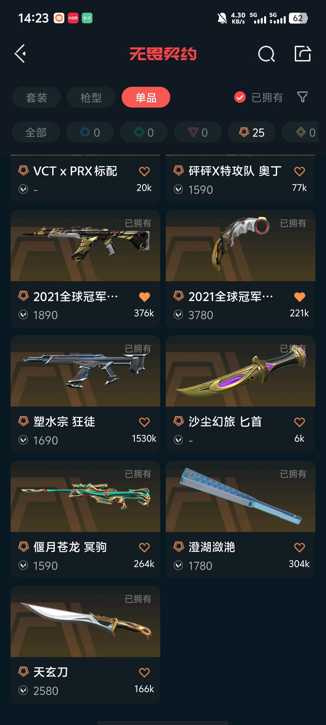 5.5w库存21冠军套/24冠军套/天界神兵套/塑水流脓混沌狂徒/西部奇点正义侦查幻影蝴蝶刀