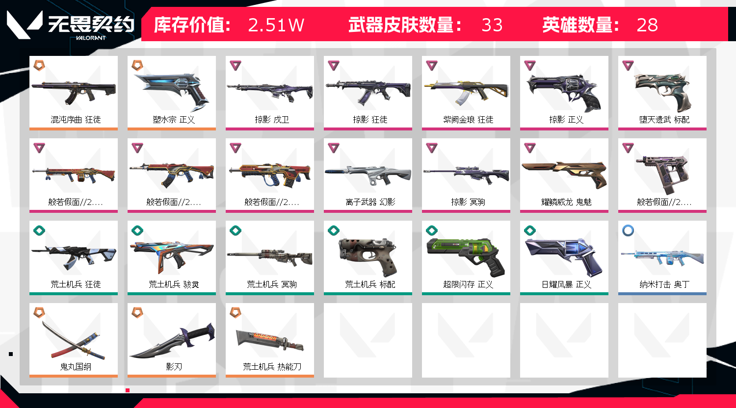 • 皮肤资产价值: 25120