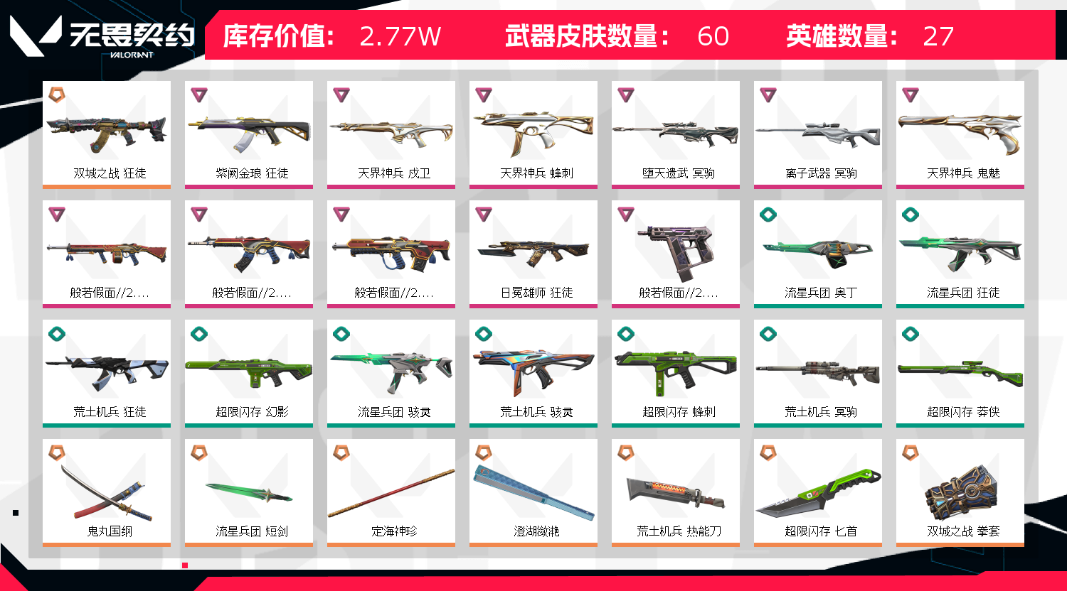 • 皮肤资产价值: 27700