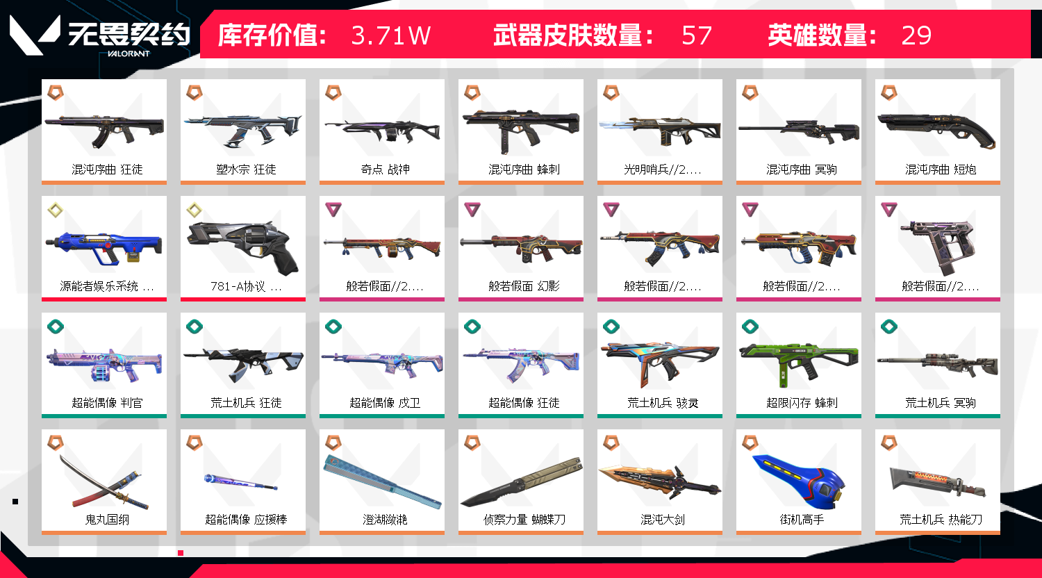 首页 > 租号大厅 > 无畏契约-wegame > wegame/wegame > 可排位❤4w库存❤混沌套❤太刀❤般若2.0套❤塑水宗狂徒❤哨兵幻影❤侦察蝴蝶刀❤鱼扇❤电玩拳套