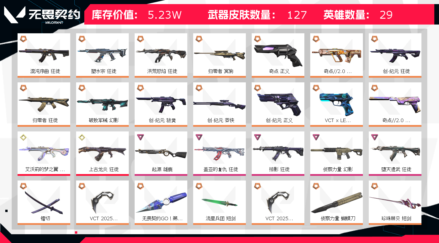 可排位❤6w库存❤VCT爪刀❤12把狂徒❤创纪元套❤奇点套❤梦之翼塑水宗狂徒❤般若破败幻影❤离子正