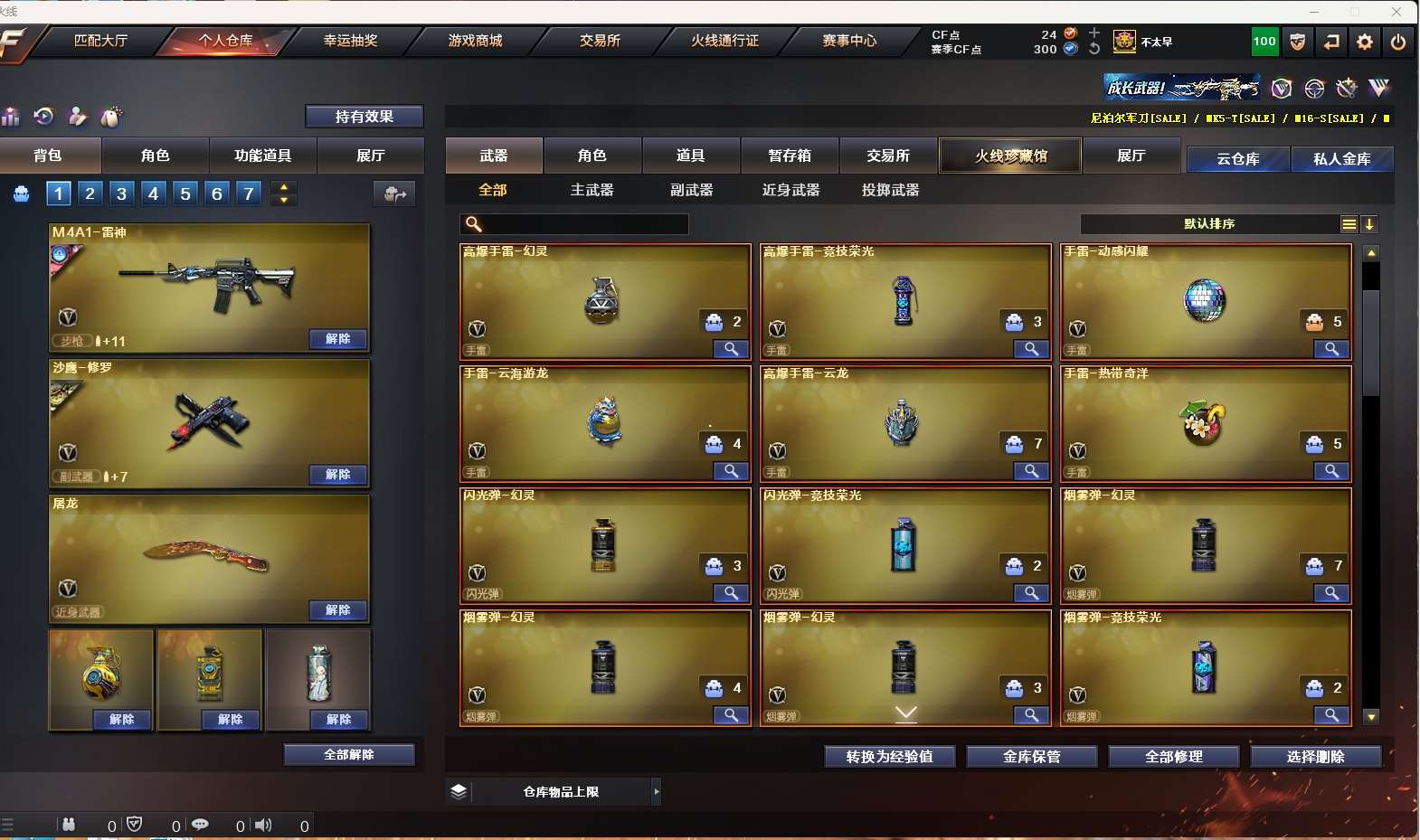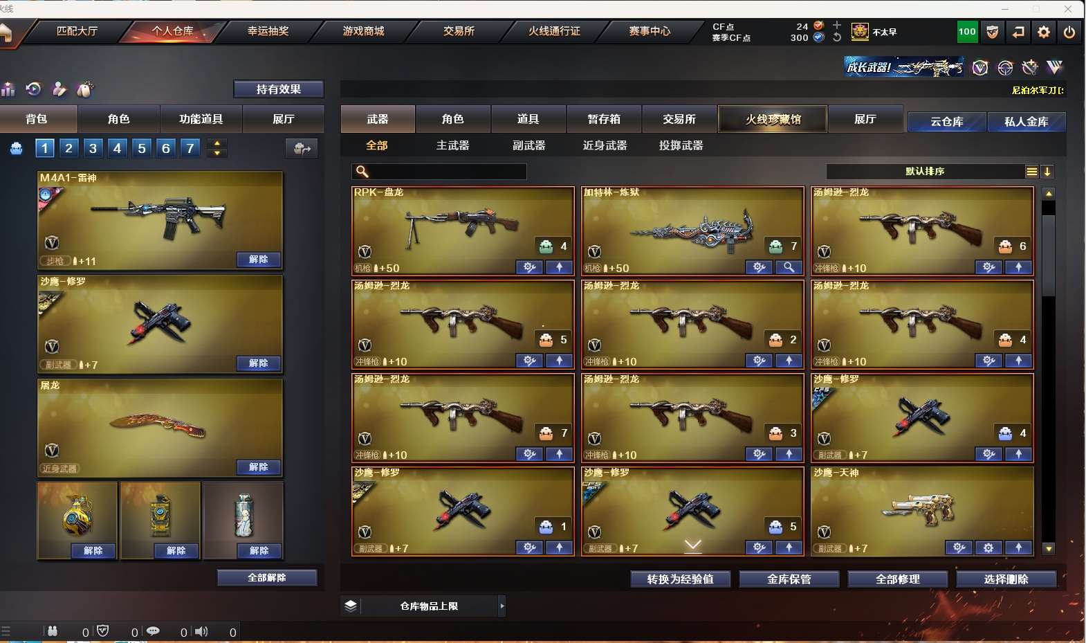 【m200-幻神】 【传说光耀】 【白虎】 【qbz金色蔷薇】 【火麒麟】 【黑龙】 【雷神+烈虎】 【黑骑士+音效卡】 【毁灭+音效卡】 【极光】 【裁决】 【王者之魄 王者冰魄】 【千变 无影 黑武士 天启 黑鲨 青龙 hk417-朱雀】 【生化 5盘龙 炼狱 6盘龙 迷你小钢 蝴蝶】 【6手呛 修罗*3 天神 王者之灵】 【10近战 屠龙*3 龙啸*2 擎天 麒麟刺 王者之击】 【手雷 幻灵雷】 【四防 王者葵貂蝉 王者葵惊若翩鸿】 【角色 葵 赢 魅影 堕落女神 雪域霜狐 王者凌霄】 【炫彩背包 动感闪耀炫彩背包 虎牙炫彩背包】 【蓝天白云名片;RPK-盘龙,QBZ03-金色蔷薇,M200-幻神,Scar Light-白虎,