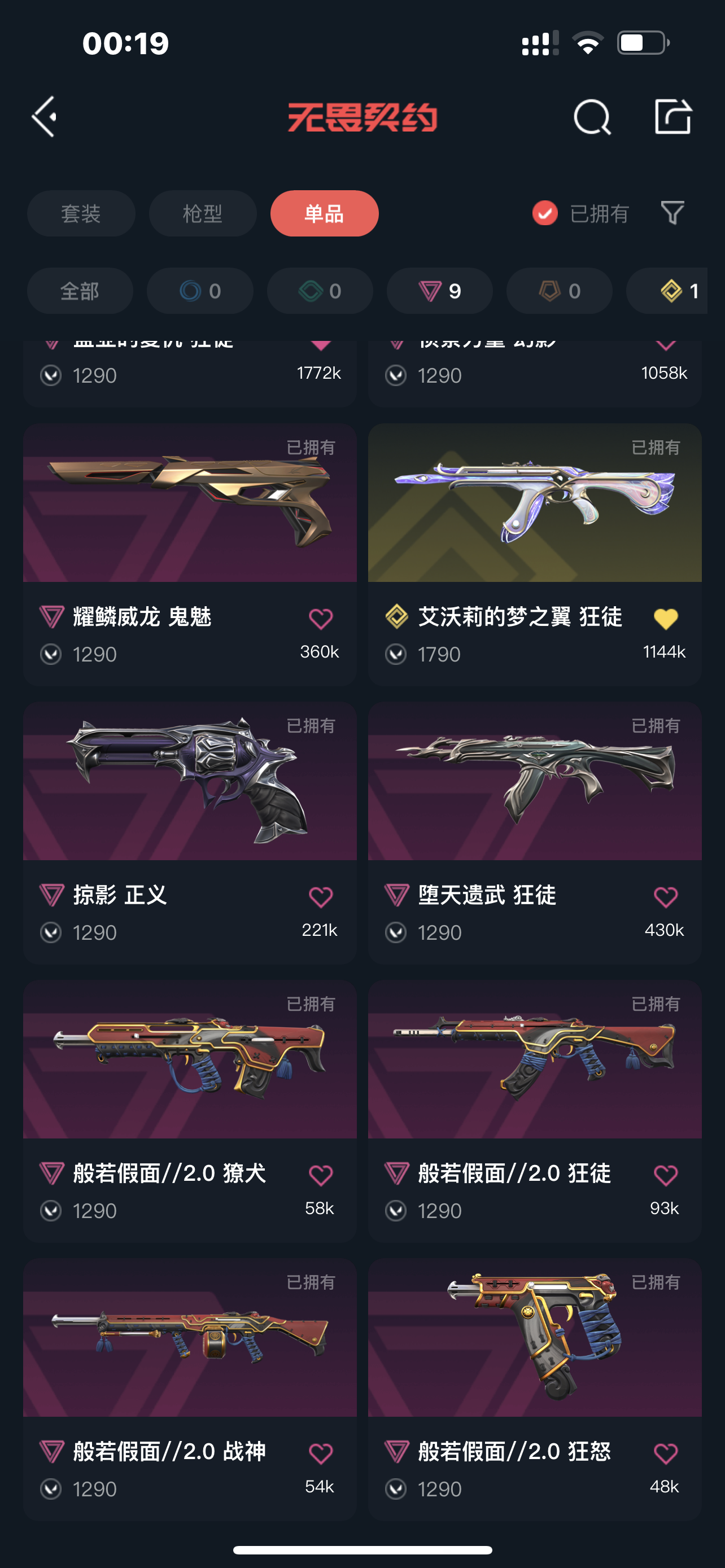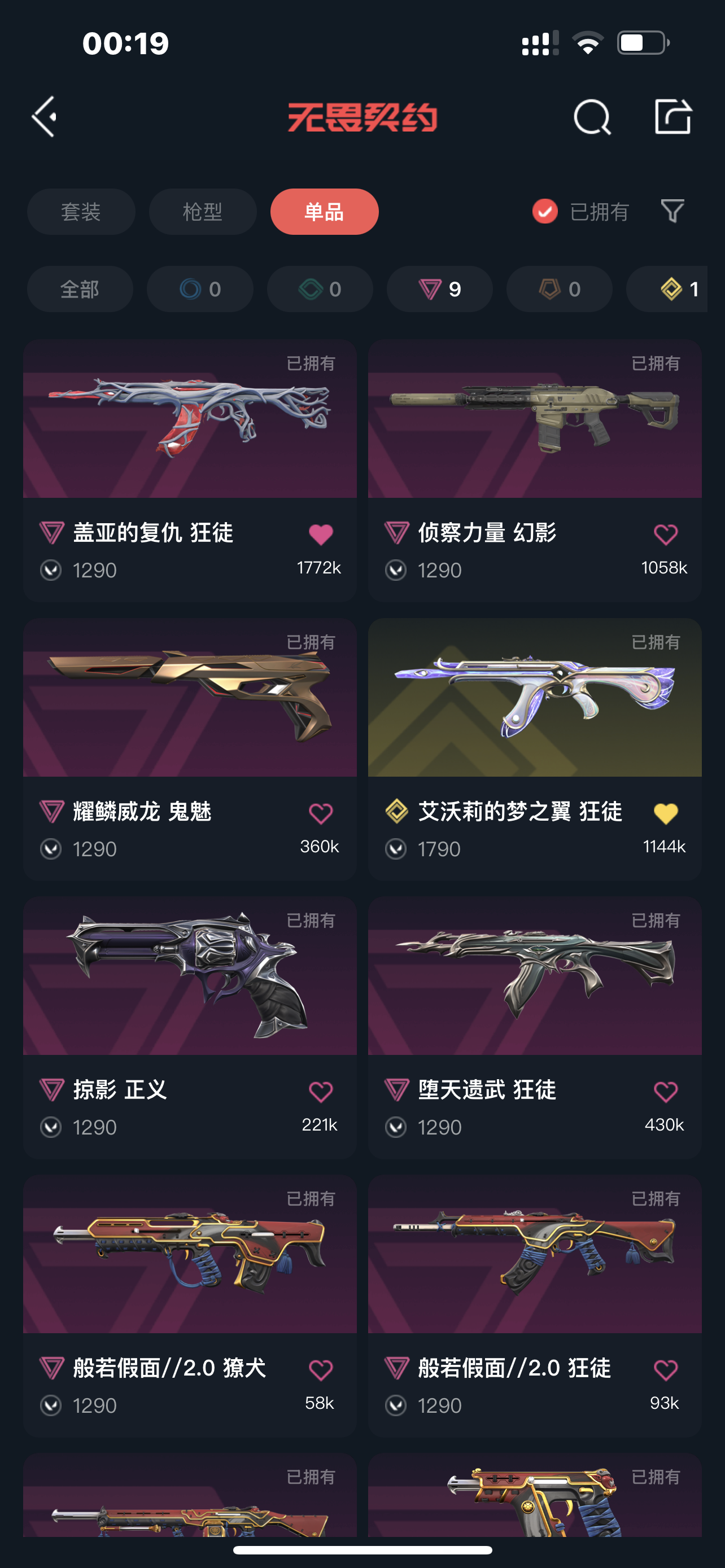 3.7w光荣狂徒⭐艾茉莉狂徒⭐VCT标配⭐双爪刀⭐假面套⭐鬼丸⭐蝴蝶刀⭐盖亚狂徒⭐侦查幻影⭐堕天狂徒;盖亚的复仇 狂徒,侦察力量 幻影,堕天遗武 狂徒,光荣异象 狂徒,掠影 正义,塑水宗 正义,