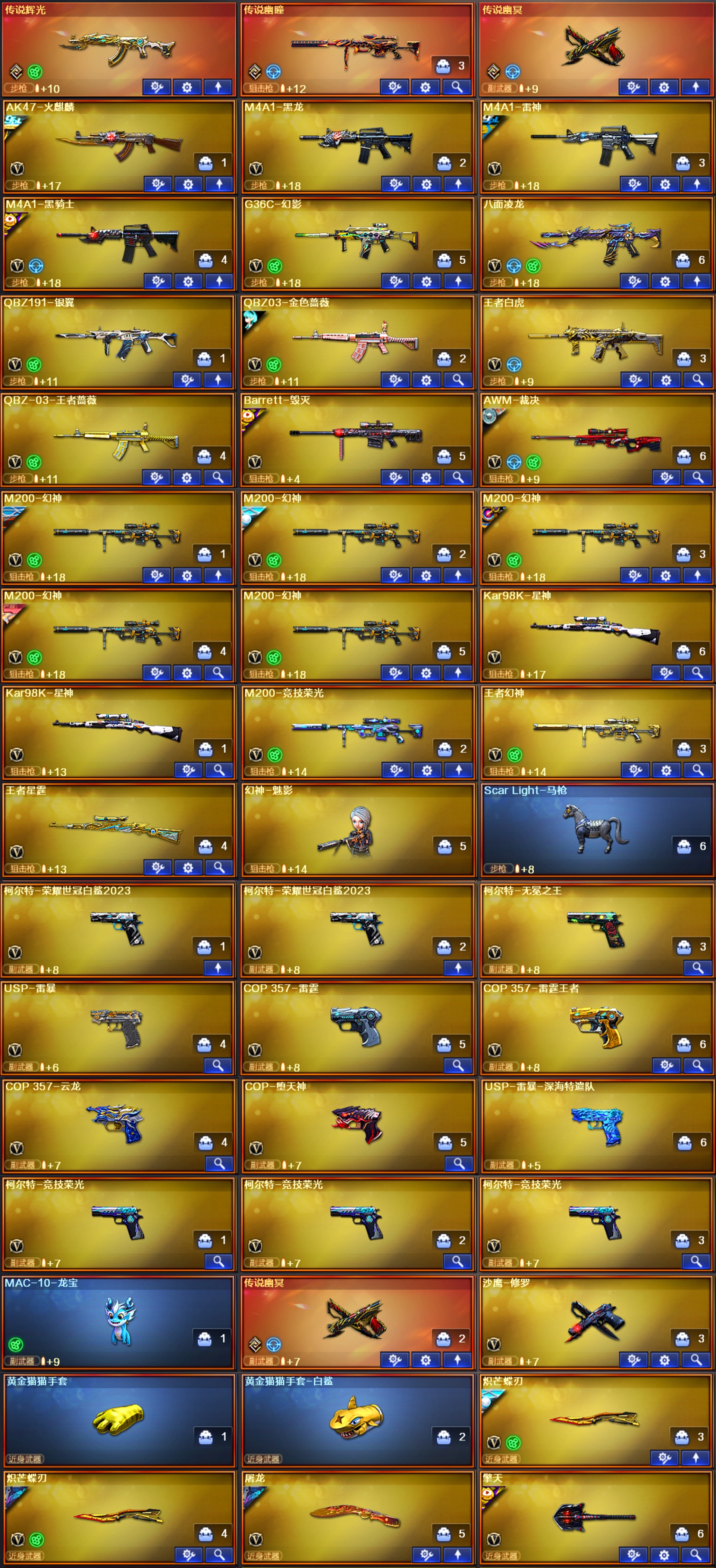 幽瞳幻影银翼满级八面玲珑♥幻神音效卡4皮星火白鲨♥裁决羽掣♥星神音效卡♥6柯尔特4cop2雷暴双全