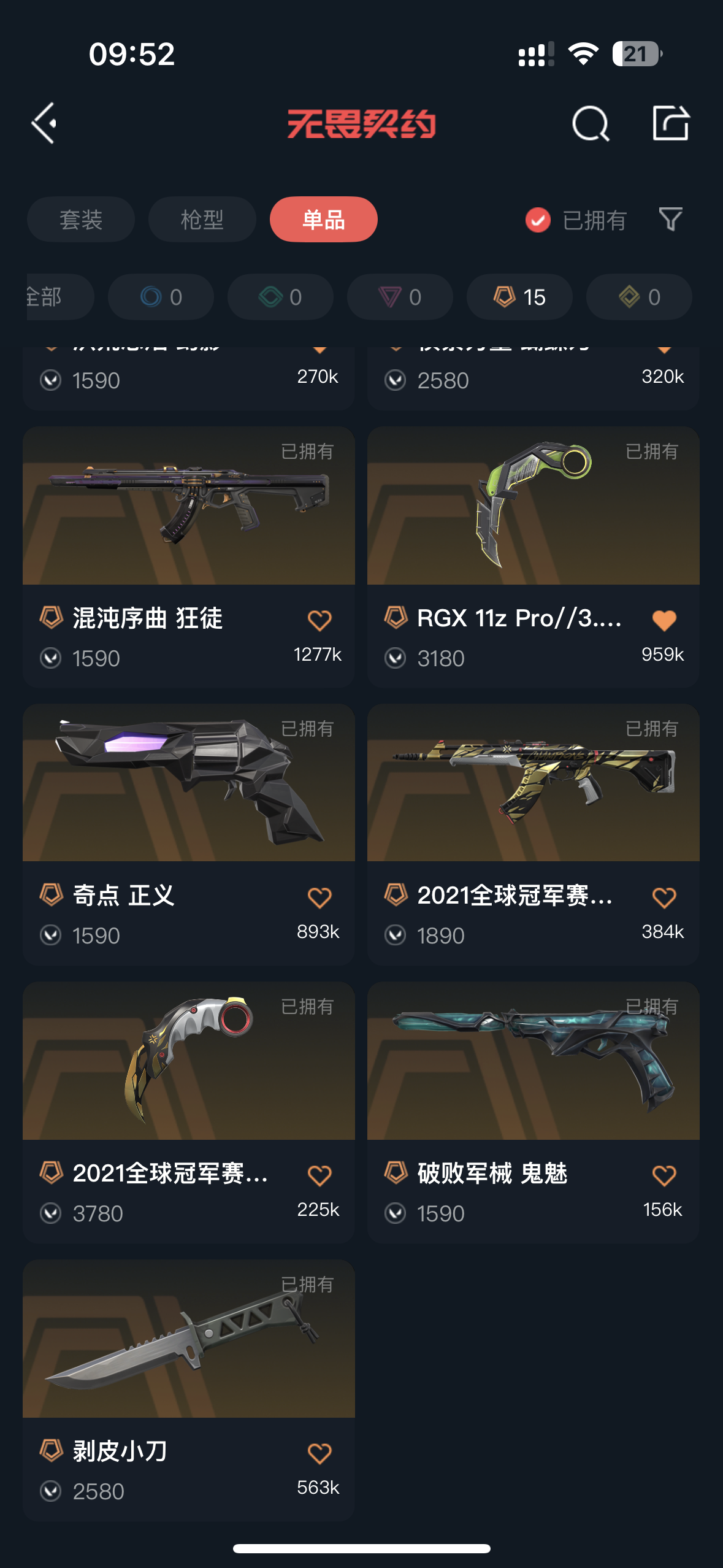 • 传奇数量: 15