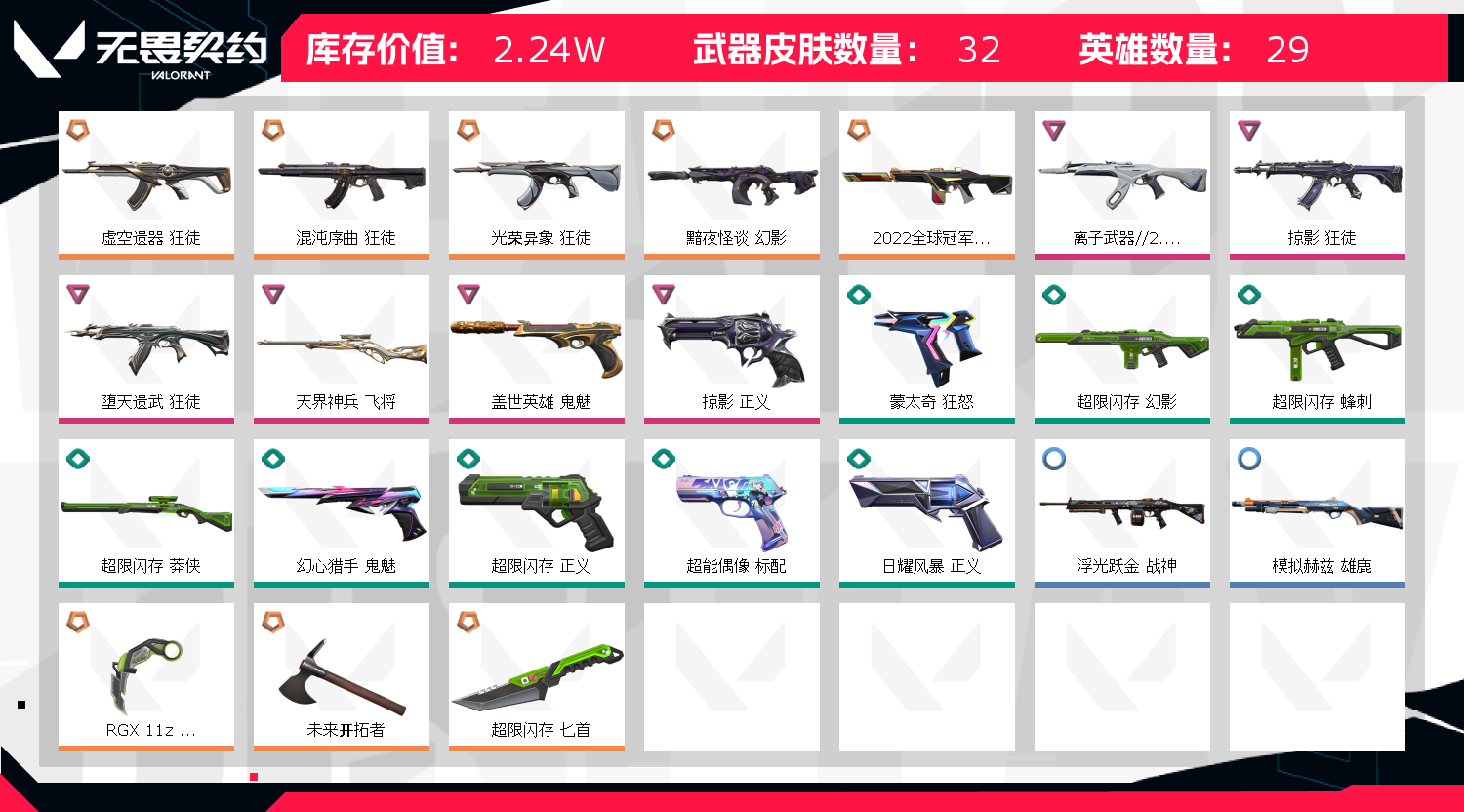 首页 > 租号大厅 > 无畏契约-wegame > wegame/wegame > 2w2库存 22冠军 显卡爪刀 掠影/光荣/混沌/AK 黯夜怪谈m4 掠影正义 盖世英雄鬼魅