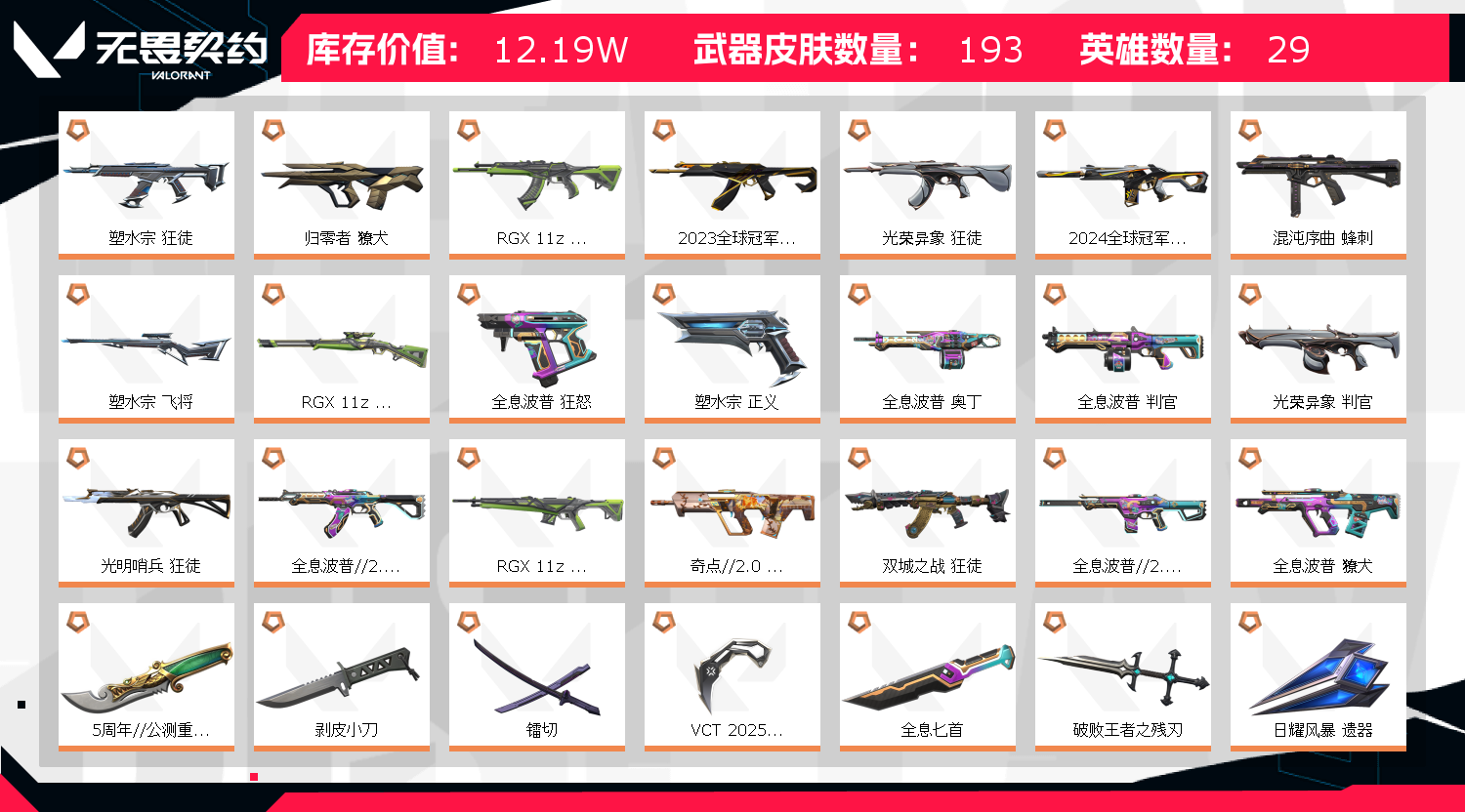 • 皮肤资产价值: 121920