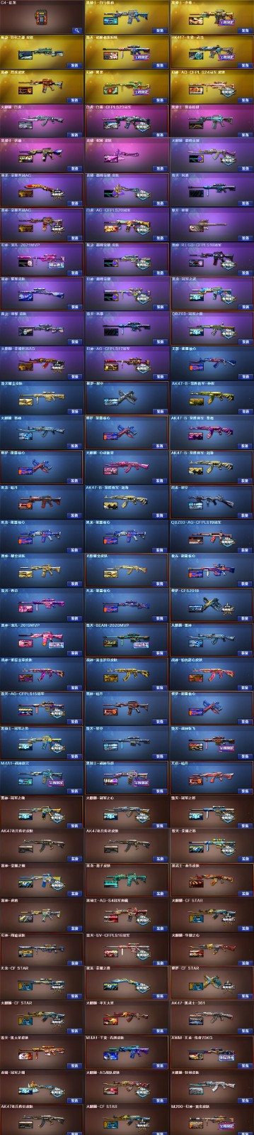 王者武器】:【炫金武士-1,炫金火麒麟-1,炫金无影-1,炫金黑龙-1,炫金雷神-1,炫金毁灭-1,王者雷怒-1,王者之魄高爆手雷-2,高爆手雷-雷霆王者-2,王者之魄闪光弹-2,王者之魄烟雾弹-1,Barrett-雷霆王者-觉醒版-1,COP 357-雷霆王者-觉醒版-2,M4A1-雷霆王者-觉醒版-1,QBZ-03-王者蔷薇-觉醒版-1,炼狱-悦蓝-觉醒版-2,烟雾弹-雷霆王者-觉醒版-2,王者之光-觉醒版-1,王者之击-觉醒版-1,王者之势-觉醒版-2,王者之啸-觉醒版-1,王者之心-觉醒版-1,王者之怒-觉醒版-1,王者之烈-觉醒版-1,王者之锋-觉醒版-2,王者之霆-1,王者幻神-觉醒版-1,王者白虎-觉醒版-1,王者蔷薇-觉醒版-1,闪光弹-雷霆王者-觉醒版-2,雷霆王者之锋-觉醒版-1,炫金骑士-1,炫金千变-1,炫金超新星-1,青龙之魄-1】 【英雄武器】:【M4A1-死神-1,AK12-天启-1,M4A1-武圣-1,AN94-超新星-2,M4A1-千变-1,M4A1-黑骑士-4,M4A1-玫瑰精灵-2,AK47-黑武士-1,屠龙-2,AK47-机械迷城-1,龙啸-1,AK47-无影-1,麒麟刺-2,AK47-火麒麟-4,AWM-天龙-1,Barrett-毁灭-2,汤姆逊-烈龙-3,Barrett-极光-1,沙鹰-修罗-7,加特林-炼狱-1,沙鹰-天神-1,Glock18-武圣-1,M4A1-雷神-2,M4A1-黑龙-2,9A91-烈火-1,M200-幻神-2,USP-雷暴-1,高爆手雷-雷暴-1,黑武士-CF网剧冠军-1,烟雾弹-雷霆-1,闪光弹-雷霆-1,闪光弹-雷暴-1,烟雾弹-雷暴-1,斩神刀-雷暴-1,传说辉光-1,天神-CF网剧冠军-1,幻灵之锋-2,恶棍-电竞装甲-1,擎天-CF网剧冠军-1,擎天-竞技荣光-1,柯尔特-冠军之特-2,柯尔特-电竞装甲-1,柯尔特-竞技荣光-1,烟雾弹-电竞装甲-1,烟雾弹-竞技荣光-1,白虎-电玩蓝兔-1,闪光弹-电竞装甲-1,闪光弹-竞技荣光-1,高爆手雷-竞技荣光-1,Scar Light-白虎-1,传说光耀-1,高爆手雷-夜魔-1,马来剑-夜魔-1,闪光弹-夜魔-1,烟雾弹-夜魔-1,高爆手雷-雷霆-1,AK-47-猩红传说-1,无影-神兵利器-1,Barrett-暗月传说-3,QBZ03-金色蔷薇-1,HK417-朱雀-1,G36C-幻影-1,QBZ03-天罚-1,烈火-动感闪耀-1,手雷-动感闪耀-1,天神-动感闪耀-1,屠龙-动感闪耀-1,Kar98K-星神-1,擎天-1,M4A1-堕天神-1,COP-堕天神-2,AWM-裁决-1,高爆手雷-堕天神-7,龙啸-堕天神-2,麒麟刺-堕天神-3,闪光弹-堕天神-7,烟雾弹-堕天神-7,M4A1-青龙-1,AK47-B-常胜将军-1,AK47-B-身先士卒-1,COP 357-幻灵-1,M4A1-幻灵-1,传说圣灵-1,烟雾弹-幻灵-3,荣耀世冠-柯尔特-1,荣耀世冠-雷神-1,荣耀世冠-龙啸-1,闪光弹-幻灵-2,雷霆之锋-1,高爆手雷-幻灵-3,黑骑士-海王-1,AK47-B-战神-1,AK47-黑鲨-1,AK47-B-战士-2,M4A1-龙血-1,Barrett-朱雀-1】 【装饰品】:【火麒麟-CF STAR-1,天龙-CF STAR-1,修罗-CF STAR-1,擎天-秘银-1,黑龙-暗月-1,天启-暗月-1,雷神-暗月-1,天龙-能量核心-1,黑龙-能量核心-1,无影-能量核心-1,极光-能量核心-1,修罗-能量核心-1,中国娃玩偶-1,灵狐潜伏者玩偶-1,刀锋玩偶-1,泰迪娃娃-1,击杀图标-恶灵-1,火麒麟-冠军之心-1,AWM-天龙-传奇70KG-1,雷神-荣耀世冠AG-1,雷神-烈虎皮肤-1,雷神-R.LGD-CFPLS18冠军-1,毁灭-冠军之怒-1,雷神-宠儿-2019MVP-1,M4A1-战神赵云-1,M4A1-千变-孔明皮肤-1,火麒麟-平天大圣-1,曼陀罗玩偶-1,火麒麟-白虎-1,火麒麟-荣耀世冠AG-1,AK47-黑武士-361-1,火麒麟-巅峰荣耀-1,雷神-虎将-1,火麒麟-心动糖果-1,黑龙-冠军之武-1,火麒麟-华夏之心-1,黑骑士-少林-1,炫羊玩偶-1,火麒麟-轻羽皮肤-1,黑骑士-摸金校尉-1,黑骑士-AG-S4冠军典藏-1,黑骑士-伏羲-1,无影耀金皮肤-1,毁灭-星空-1,关羽玩偶-1,黑骑士-冠军之势-1,火麒麟玩偶-1,雷神-耀金皮肤-1,HK417-朱雀-武当-1,终结者玩偶-1,白虎-AG-CFPLS20冠军-1,QBZ03-AG-CFPLS19冠军-1,QBZ03-冠军之薇-1,战神-粉色甜心皮肤-1,战神-流金岁月皮肤-1,战神-紫绶金章皮肤-1,AK47-B-常胜将军-曹操-1,AK47-B-常胜将军-刘备-1,AK47-B-常胜将军-孙权-1,屠龙-荣耀之锋-1,雷神-荣耀之魄-1,毁灭-荣耀之怒-1,毁灭耀金皮肤-1,烈龙-星空-1,修罗-星空-1,十周年击杀图标-1,幻神-降龙-1,幻神-巅峰荣耀-1,幻神-宠儿-2021MVP-1,幻神-AG-CFPLS17冠军-1,幻神-周瑜皮肤-1,星神-璀璨皮肤-1,屠龙-荣耀世冠AG-1,毁灭-风暴-1,毁灭-黑大圣皮肤-1,毁灭-BEAN-2020MVP-1,白虎-白鲨-CFPLS23冠军-1,龙啸-蛇姬 皮肤-1,裁决-异化之源 皮肤-1,裁决-羽掣 皮肤-1,雷神-冠军之魄-1,幻神-AG-CFPL S24冠军 皮肤-1,龙啸-冠军之啸-1,裁决-巅峰荣耀 皮肤-1,CFS 击杀图标-1,黑武士—典韦皮肤-1,毁灭-SV-CFPLS16冠军-1,黑龙-墨子皮肤-1,零-水下丽影玩偶-1,黑骑士-战神马超-1,毁灭-战神张飞-1,王胖子玩偶-1,龙啸-巅峰荣耀 皮肤-1,蝴蝶玩偶-1,M200-幻神-黄忠皮肤-1】 【角色】:【魅影,金戈,陈龙野-X,樱,瞳,葵,零,复仇者,幻影,雷豹,铁骑,飞虎队,猎狐者,潘多拉,活力灵狐,灵狐者,夏日之兰,传说女帝,嘉年华灵狐,木兰,毒蝎-X,雪莉杨-摸金校尉,炫,威锋,救世主,关小雨,零-水下丽影,灵狐者-黄金海岸,电竞教官-云悠悠,雨棠,王者涂鸦,王者-瞳-闭月羞花,夜玫瑰-X,影武者-X,救世主-X,剑齿虎-X,风暴女,陈龙野,精英部队,烈锋,猎狐者-英特尔,王者-零-传说之路,影武者,代号:翼,潘多拉-甜心教官,新娜塔莎,虎妞,娟娟,龙儿,新夜玫瑰,紫霞,潜龙队-X,王者炽天使,隼,兰-限定版,麻雀,炽天使,王者-魅影,雪莉杨,智影,维纳斯,北极狐-X,灵动武士,暗夜-X,迷迭香,灵狐者-职业经理,王者玲珑,青霞仙子,职业选手,妲己,蜀雪,幽,葵-赛博朋克】 【道具】:【超级背包-1,炫彩背包-1,金蛇戒-1,银蛇戒-1,烟雾保护头盔-1,闪光护目镜-1,防弹衣-1,防弹头盔-1,手雷包-1,C4工具钳-1,防化服-1,夺命之镰-1,变异宝贝-1,灵魂忍者-1,妖姬-1,疯狂宝贝-1,迷雾幽灵-1,生化弹匣-1,步枪弹匣-1,皇龙戒-1,彩蝶之翼-1,C4-红龙-1,Barrett-毁灭音效卡-1,M4A1-雷神音