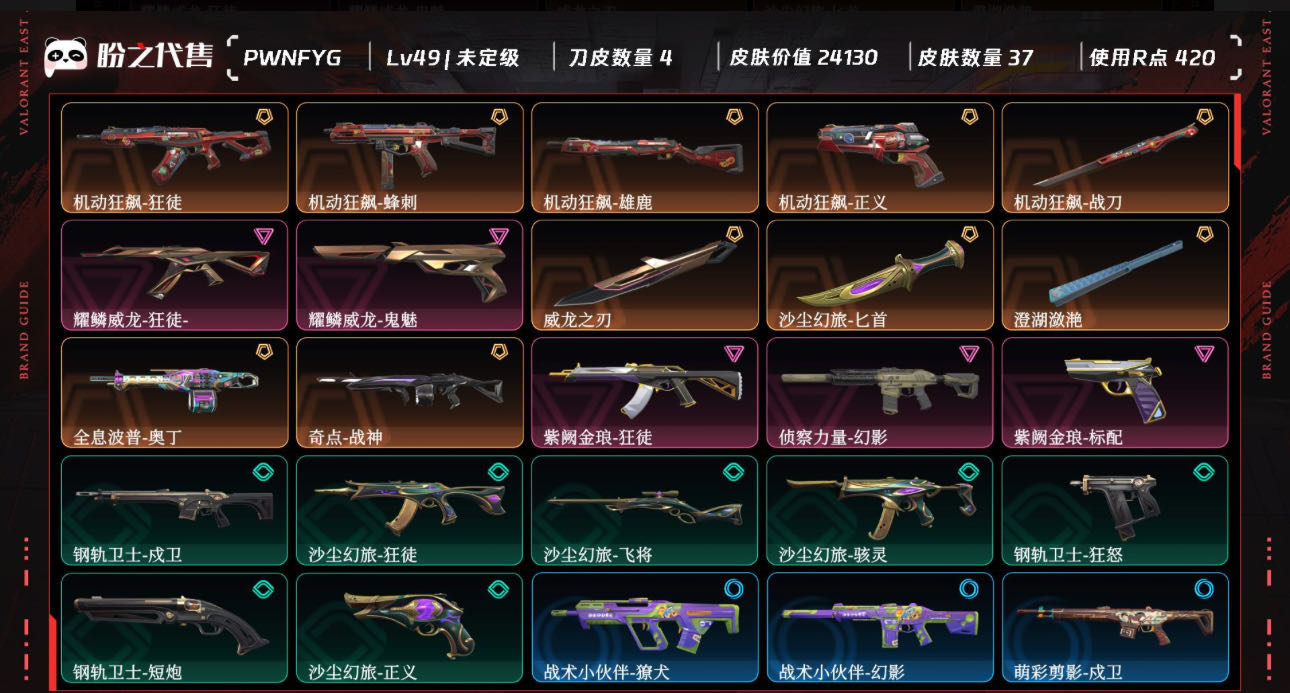 首页 > 租号大厅 > 无畏契约-wegame > wegame/wegame > 素材资产2.4w⚡️机动狂飙套/威龙套/机动威龙狂徒⚡️威龙之刃 沙尘匕首