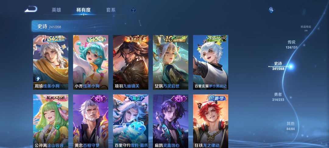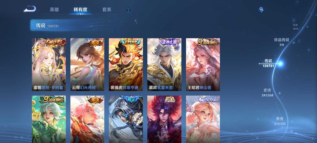 v10、12水555皮、死亡执政官、刘备星传说时之思念、小兵皮肤大耳狗甜茶、瑶无双真我赫兹、愿照·九州拓、怪盗基德、画中仙、至尊宝、凤求凰、神威、天魔缭乱