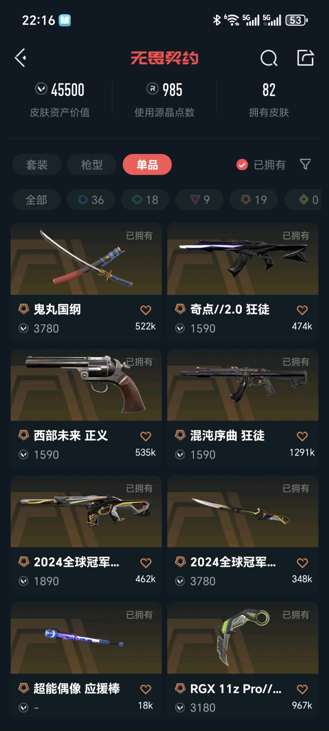 • 皮肤资产价值: 45500