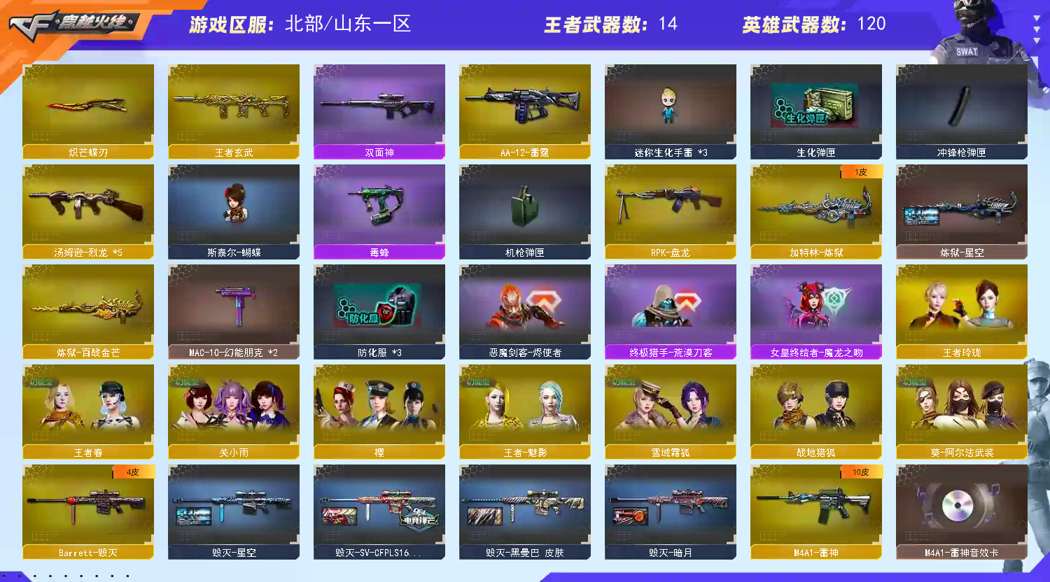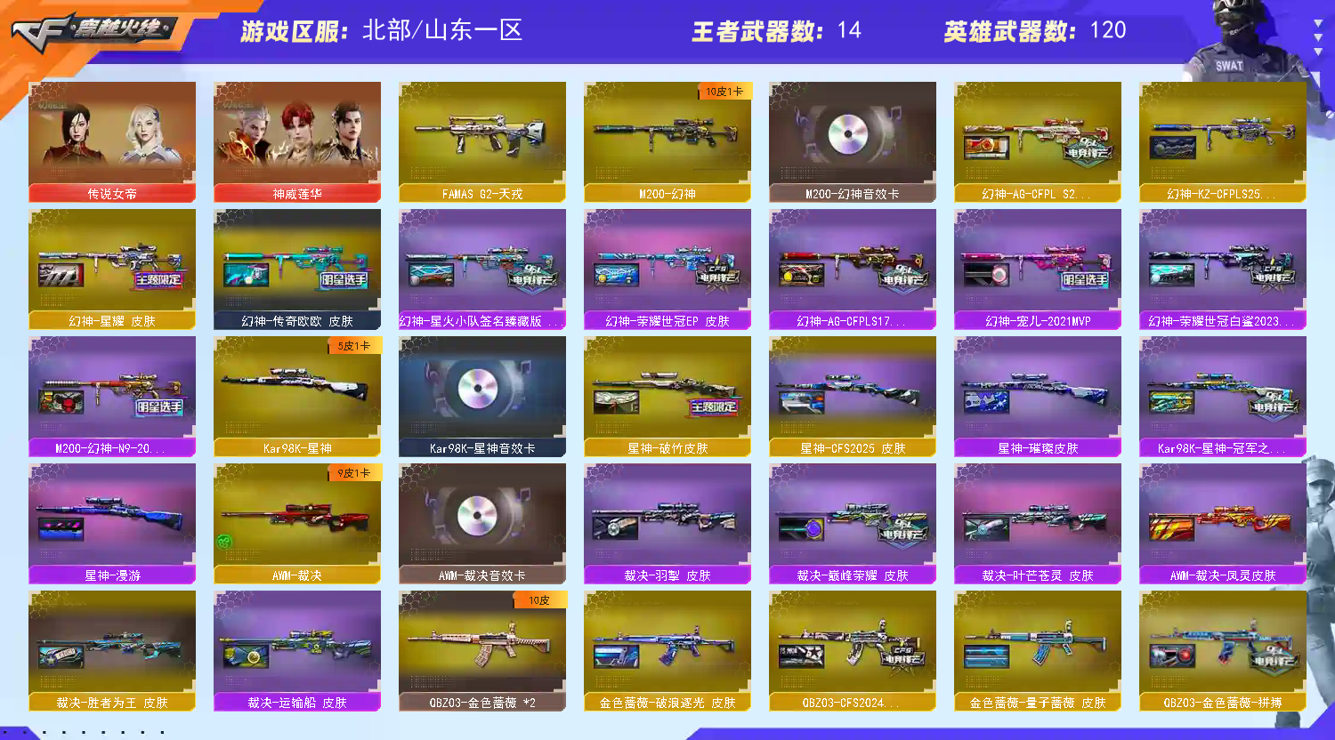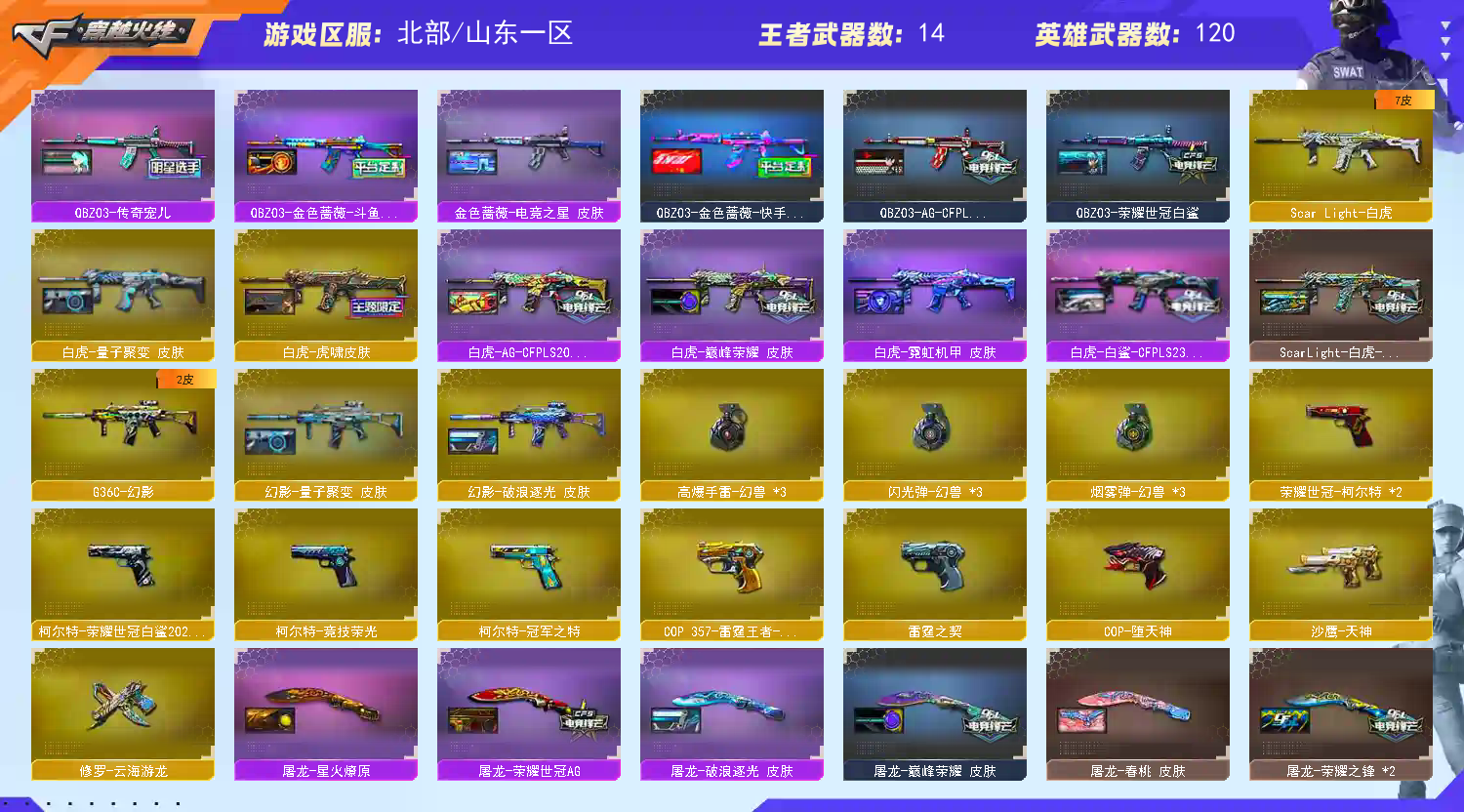 爆破生化战场都能玩刀战满配。本号商所有账号均在当地公安局有所备案,在下恳请各位高抬贵手,本人与当地律所有长期协作,如果因为您的开挂等行为导致封号本人一定将律师函递给您,切勿以身犯法。请大家文明游戏,排位赛不要挂机,不要中途退出!显示不允许排位可能是系统BUG,能玩尽管玩。账号密码不可能出错,多试几次便好,祝愿租客玩的开心,生活美满。都是实名游戏,您的身份信息与支付信息都可以查到,本账号涉及虚拟财产,您的游戏行为后都可以查询。;荣耀世冠-柯尔特,柯尔特-荣耀世冠白鲨2023,柯尔特-冠军之特,炽芒蝶刃,传说女帝,RPK-盘龙,QBZ03-金色蔷薇,