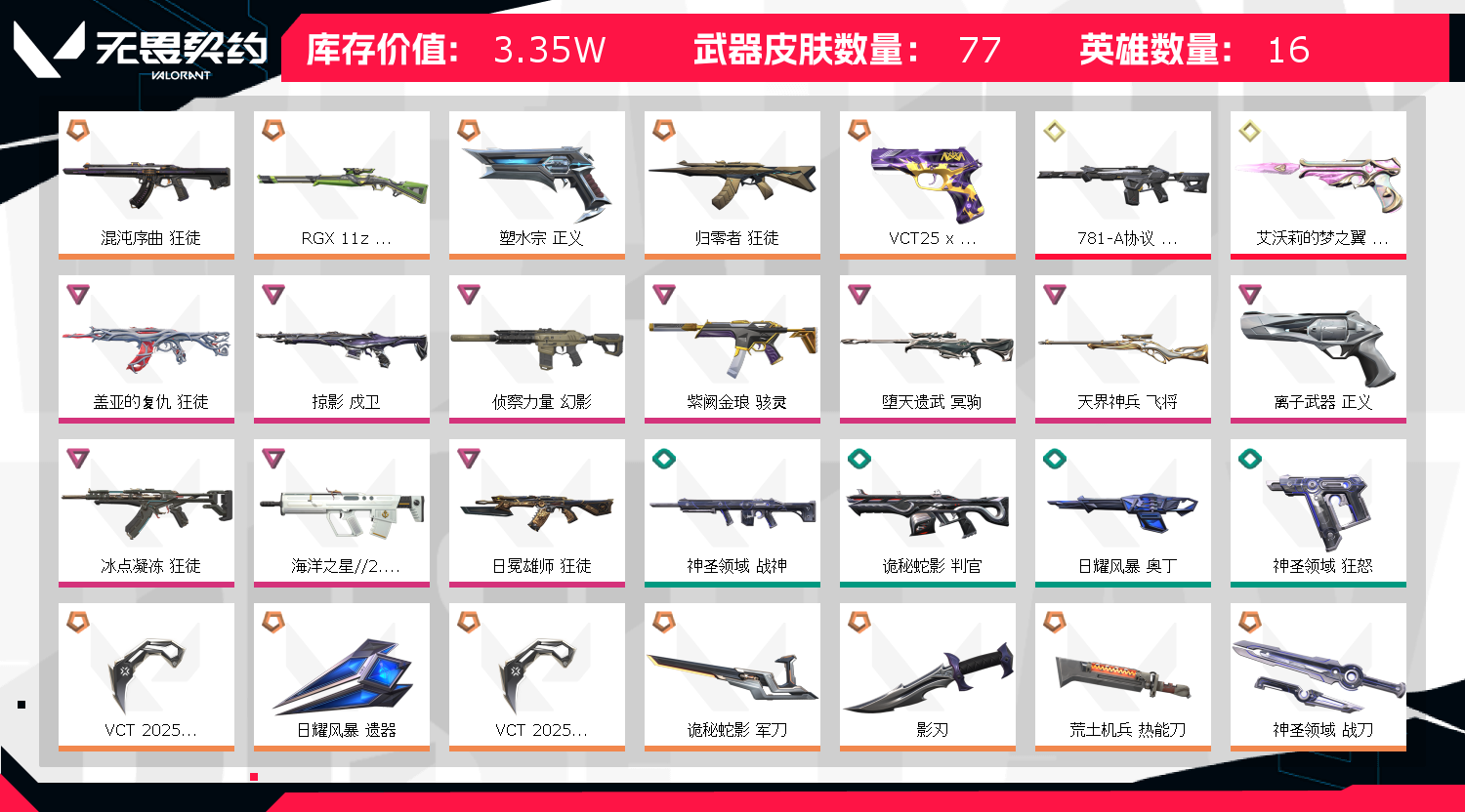 • 武器皮肤数量: 77