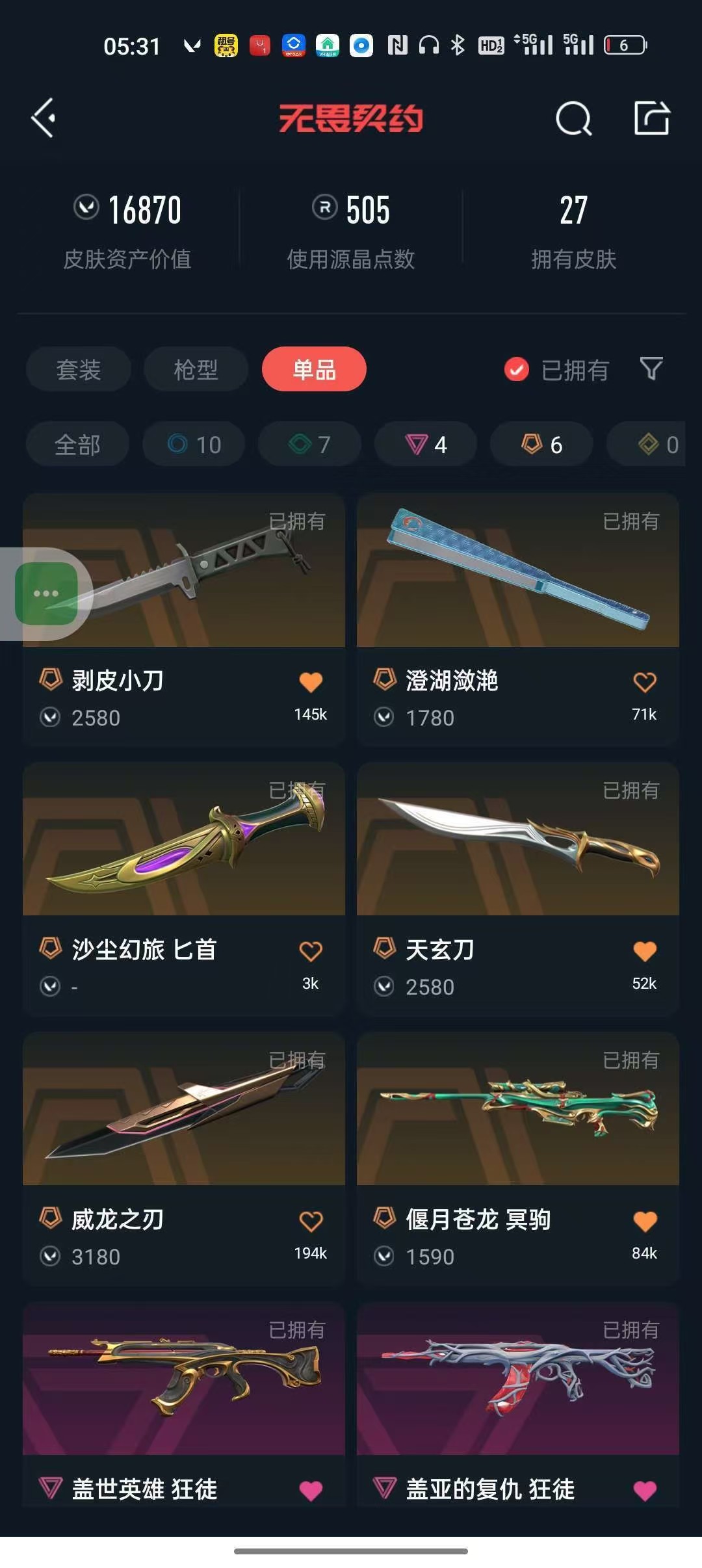 • 皮肤资产价值: 16870