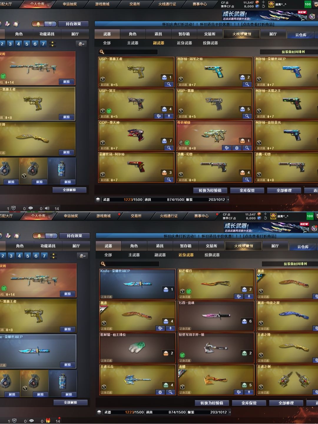 退排位拉黑 时间快到了就不要开排位了 导致禁赛全部拉黑;USP-雷暴,柯尔特-无冕之王,USP-雷暴王者,荣耀世冠-柯尔特,柯尔特-冠军之特,炽芒蝶刃,传说影煞,