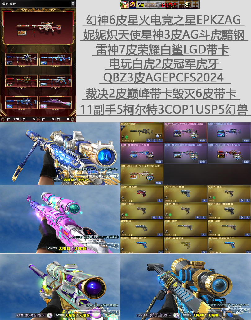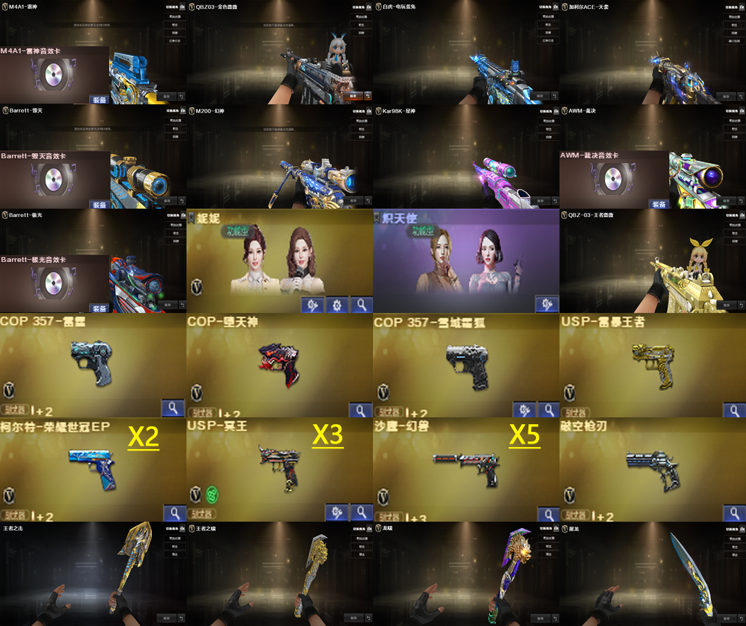 请勿随意退游戏,以防触发身份验证。乱退排位者。必将拉黑!;USP-雷暴王者,妮妮,RPK-盘龙,QBZ03-金色蔷薇,M200-幻神,加利尔ACE-天袭,Kar98K-星神,