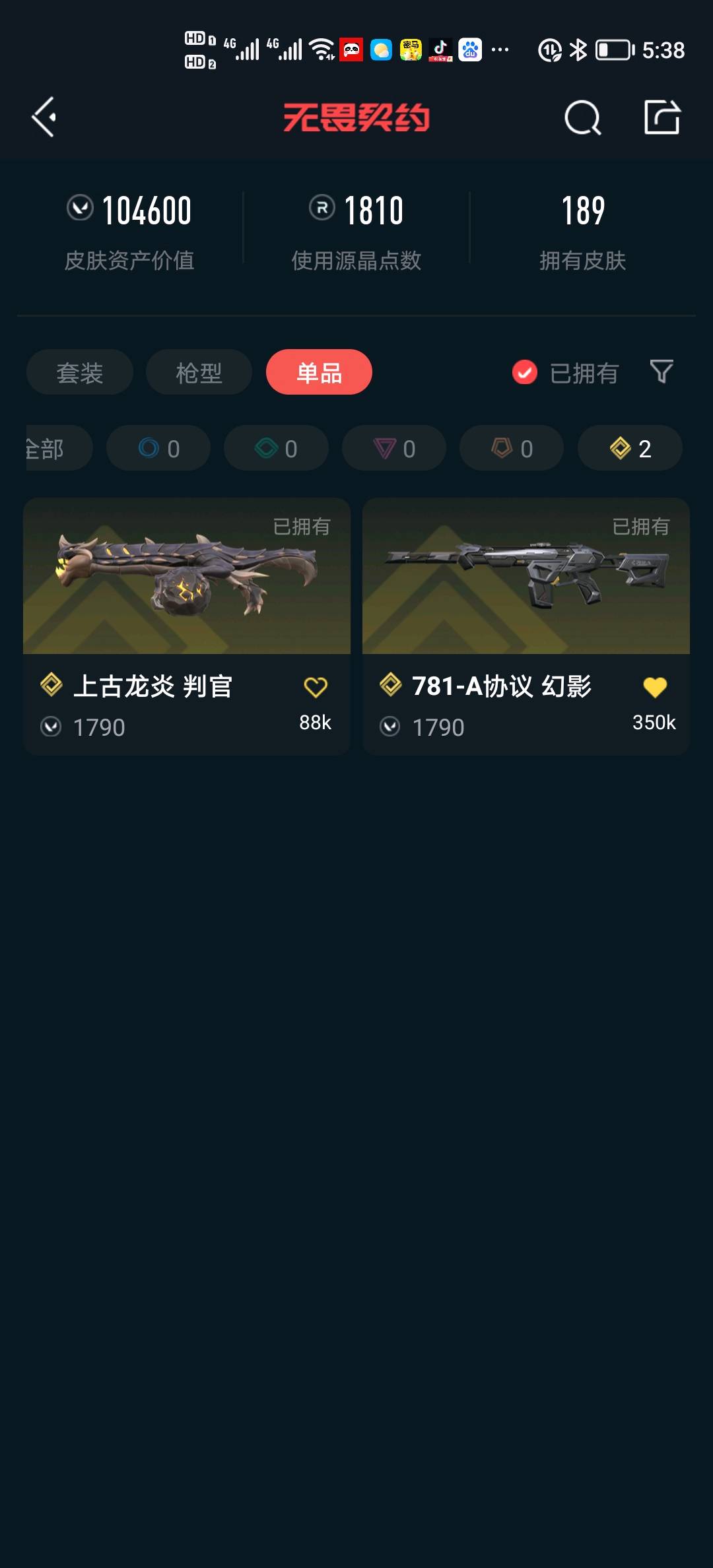 首页 > 租号大厅 > 无畏契约-wegame > wegame/wegame > 库存10w,刀皮20多把,200个皮热门显卡爪刀等,协议a1,龙喷,ak皮肤巨多,可排位不可挂机炸鱼