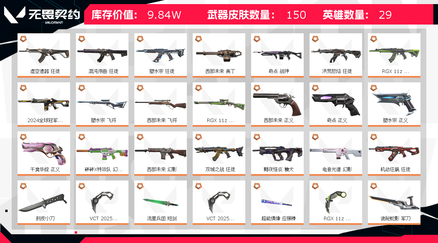 • 皮肤资产价值: 98380