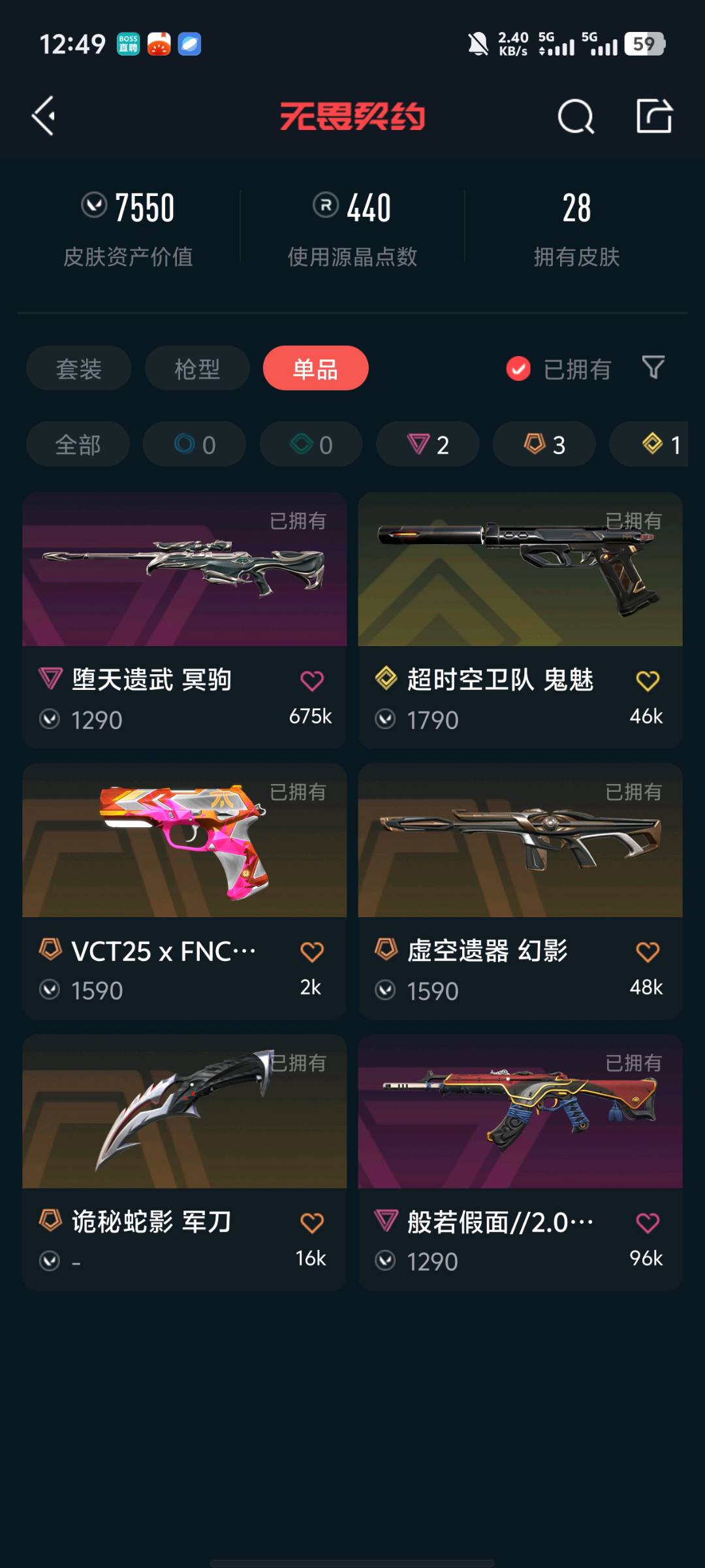 首页 > 租号大厅 > 无畏契约-wegame > wegame/wegame > 有25冠军套,经典皮肤可玩,铂金号,如出现异地登录及时联系解封