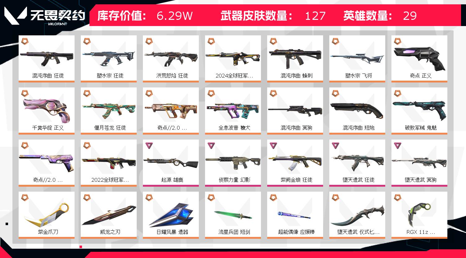 • 武器皮肤数量: 127