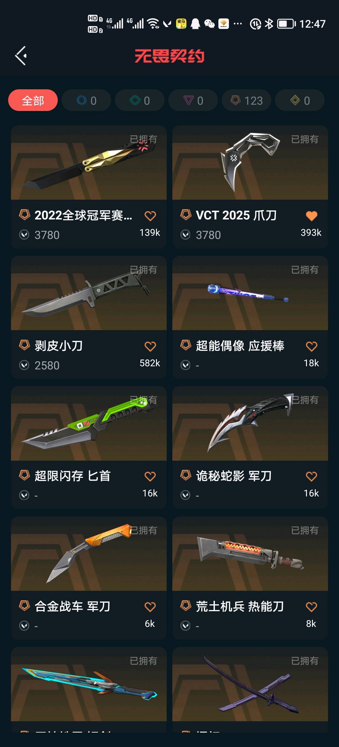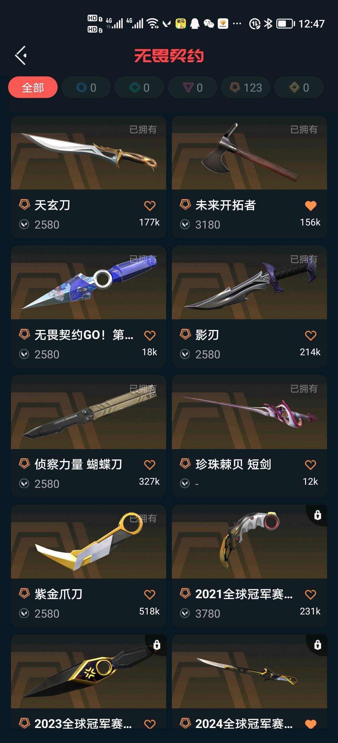 首页 > 租号大厅 > 无畏契约-wegame > wegame/wegame > 库存9.7w,20把热门金、紫ak,冠军蝴蝶,奇点蝴蝶侦查蝴蝶三蝴蝶外加很多热门刀:挂机炸鱼拉黑