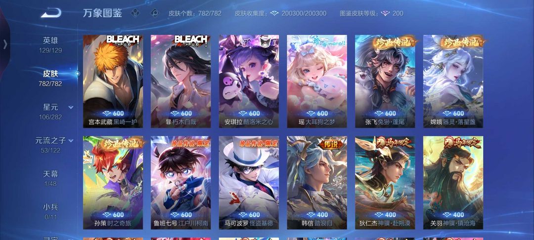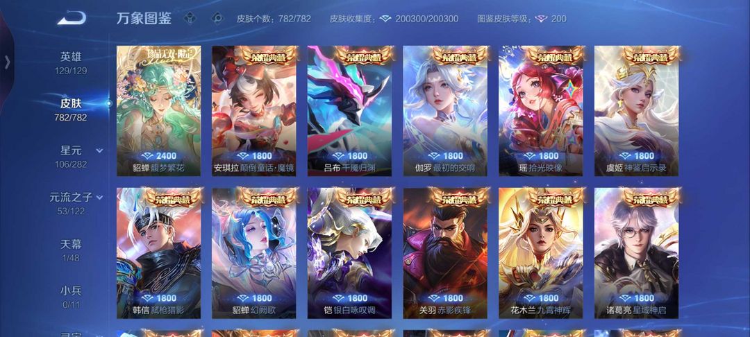 【非云直上】537满皮满典藏12星元◎鲁班新皮◎虞姬星元◎天使星元◎白金战神◎妲己绝版星元