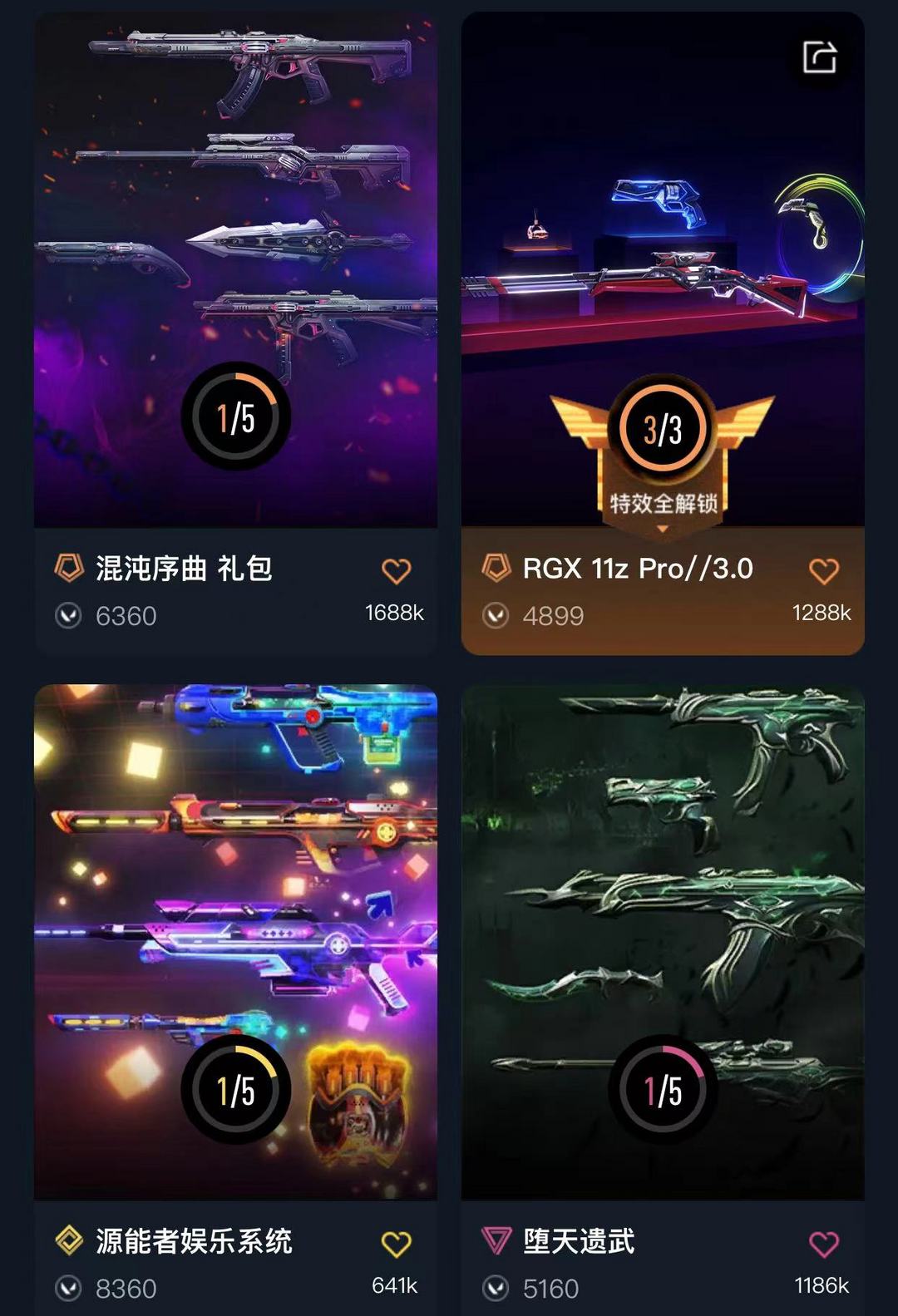 3.9w库存/可排/套装:RGX2.0 3.0 耀鳞/镭切/掠影混沌坠天ak/显卡爪子/威龙源能幻影