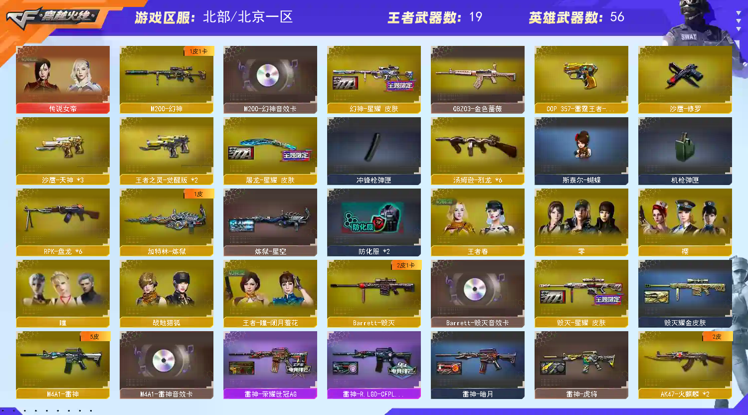 【北部】77v传说女帝幻神星耀幻神音效卡六列斯太尔蝴蝶六盘炼狱星神音效卡;传说女帝,RPK-盘龙,QBZ03-金色蔷薇,M200-幻神,