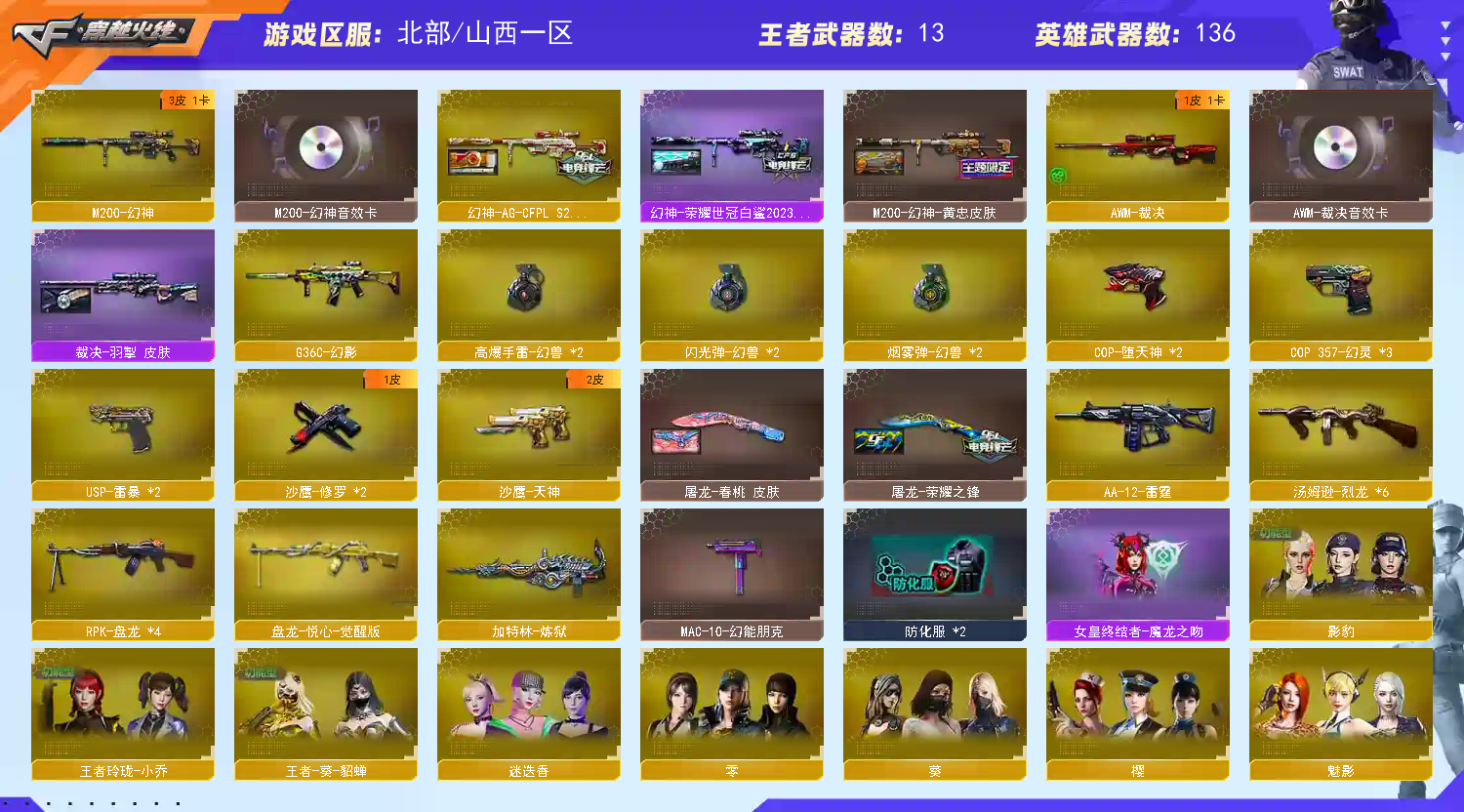 【温馨提示】此号价值数十万,已向公安机关报备,如有开G开辅助封号的,由平台提供,身份信息证据和地址进行报警处理并依法追究.账号开挂追责 后台看的一清二楚!!!! 不要有侥幸心理 开挂是犯罪行为!!!!恶意撤单退排位永久拉黑3把柯尔特1911 幻兽套 幻神新AG音效卡 裁决三件套 裁决音效卡 可打字 裁决音效卡 王者幻神 裁决 白虎 盘龙 烈龙 炼狱 堕天神 幻灵 usp雷暴 幻兽 G36C幻影 幻神新AGCFPLS24冠军 荣耀世冠白虎 荣耀之魄 荣耀之锋 裁决音效卡 幻神音效卡 黑骑士音效卡 雷神音效卡 毁灭音效卡 幻神三件套 幻神音效卡;USP-雷暴,RPK-盘龙,G36C-幻影,M200-幻神,