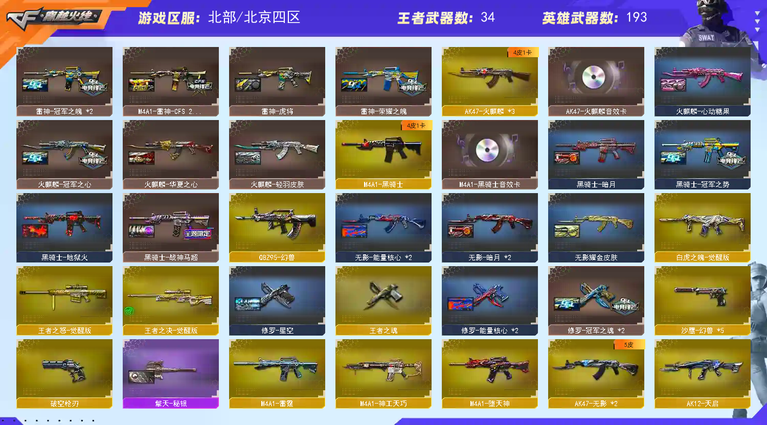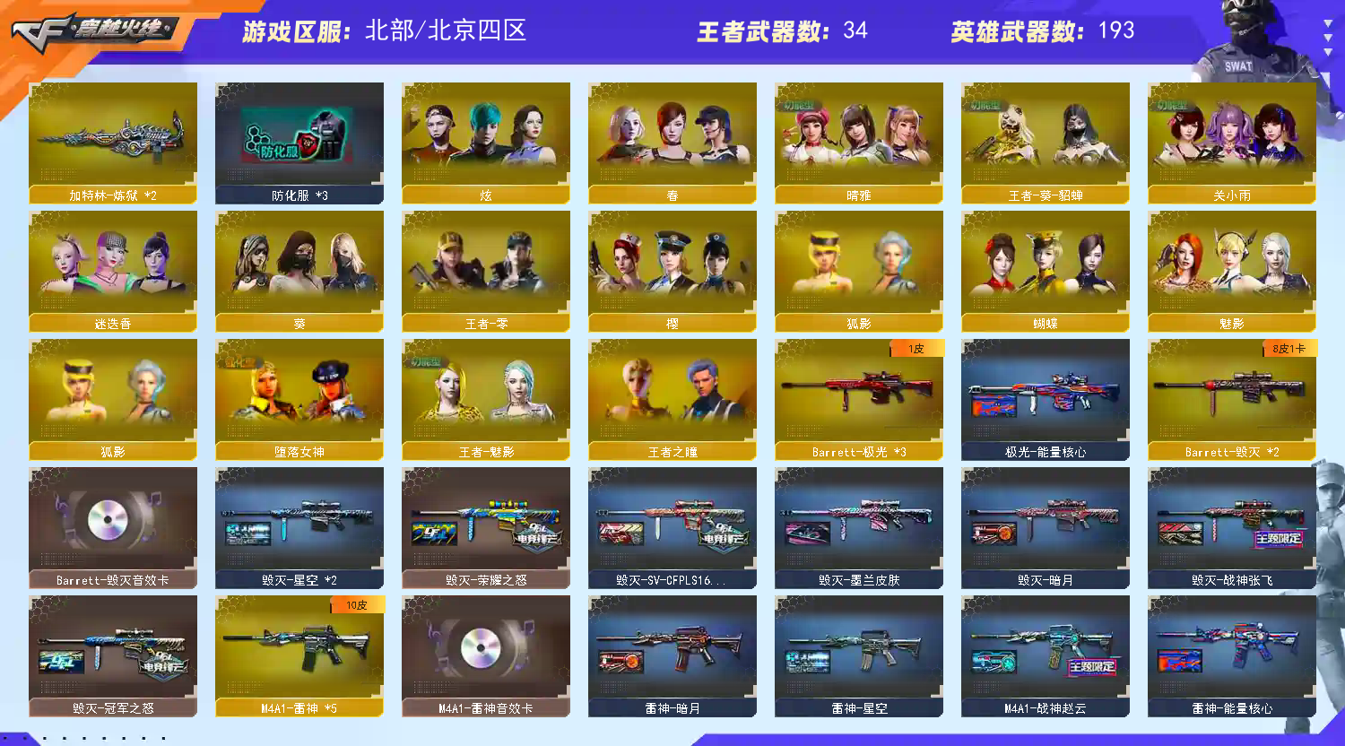 艾莉莎、5套幻兽!星火、冠幻、4冠特3冠军小刀、2雷暴2Cop!2蝴蝶刀皮肤、QBZ冠薇 荣耀之魄
