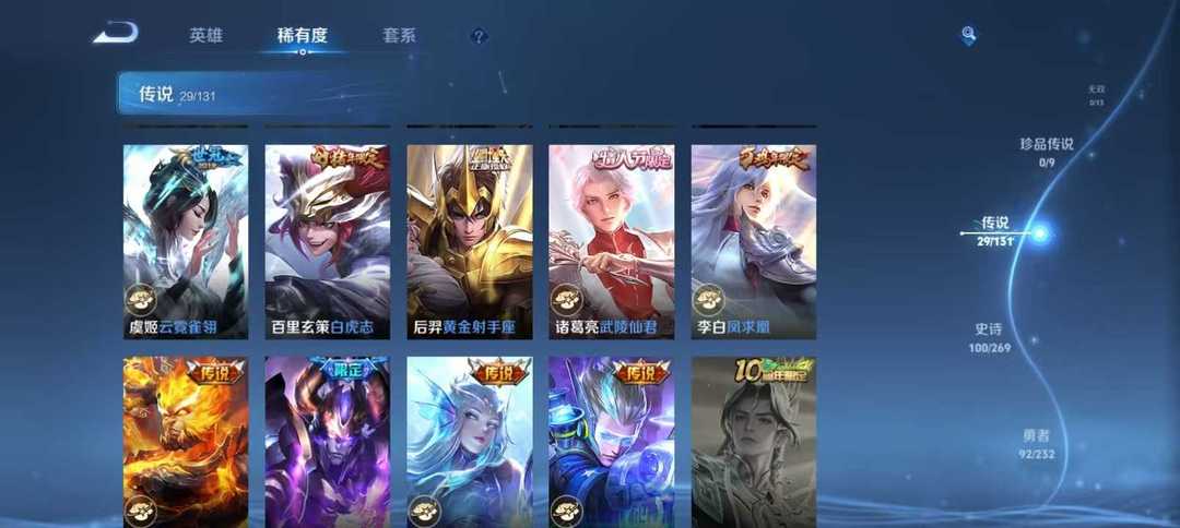 【非云直上】V10★皮肤榜一★539皮满典藏★鲁班时之奇旅会员★虞姬黛羽霜翎星元★吕布白金战神★全能大师★多金标★个性按键