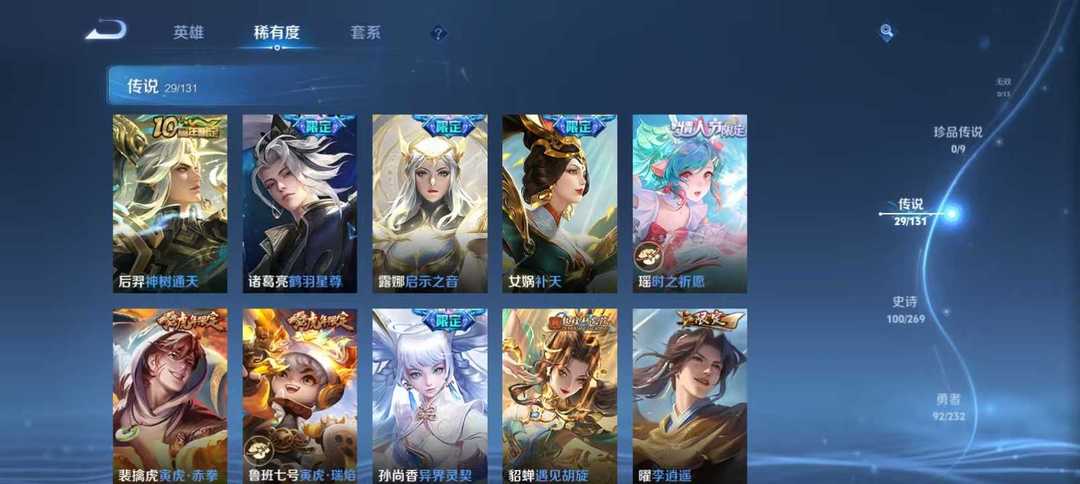 v10、12水555皮、死亡执政官、刘备星传说时之思念、小兵皮肤大耳狗甜茶、瑶无双真我赫兹、愿照·九州拓、怪盗基德、画中仙、至尊宝、凤求凰、神威、天魔缭乱