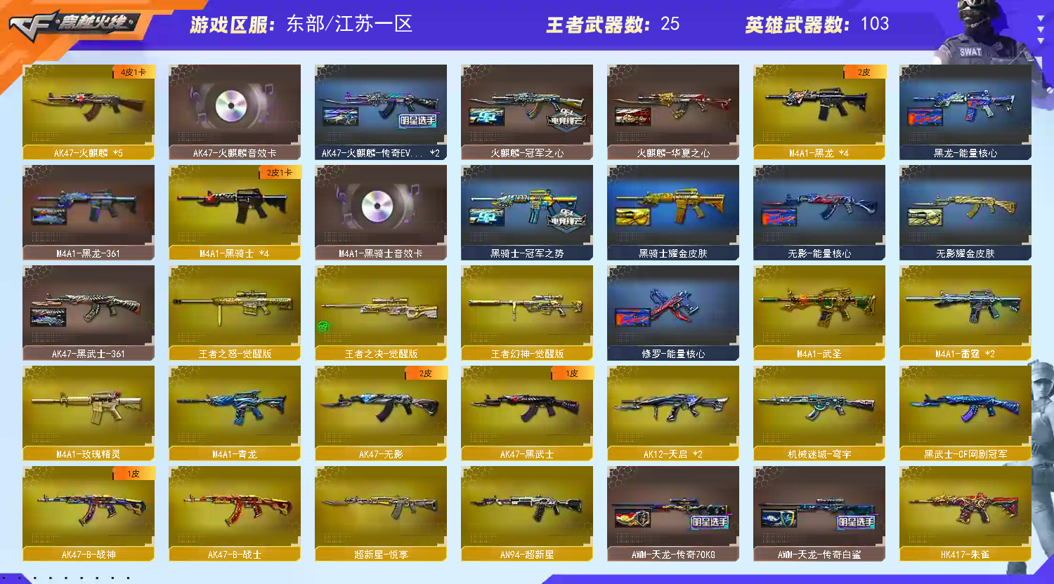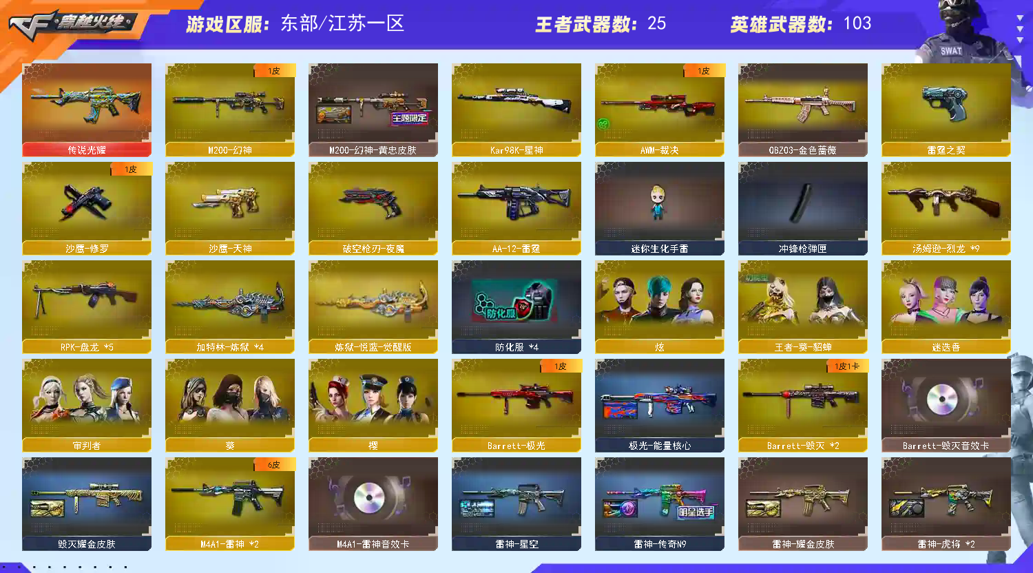 ~~出现网络异常~~多登入几次即可 ~~喜欢记得收藏~;RPK-盘龙,QBZ03-金色蔷薇,M200-幻神,Kar98K-星神,
