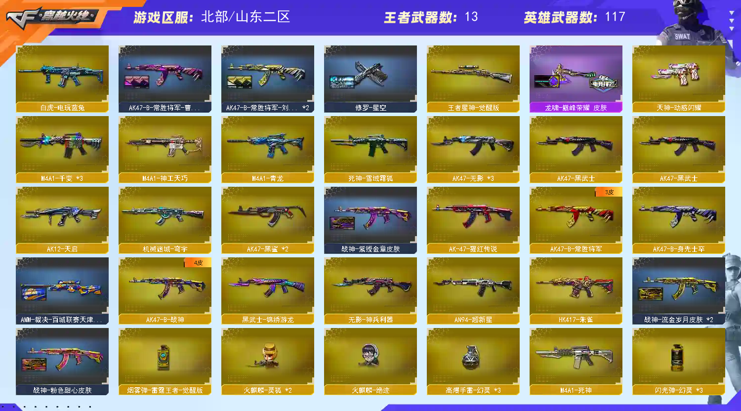 【温馨提示】此号价值数十万,已向公安机关报备,如有开G开辅助封号的,由平台提供,身份信息证据和地址进行报警处理并依法追究.账号开挂追责 后台看的一清二楚!!!! 不要有侥幸心理 开挂是犯罪行为!!!!恶意撤单退排位永久拉黑 传奇可打字⭐幻神新AG 裁决巅峰荣耀三件套 裁决音效卡 幻神音效卡;柯尔特-冠军之特,晴雅,RPK-盘龙,QBZ03-金色蔷薇,M200-幻神,Scar Light-白虎,