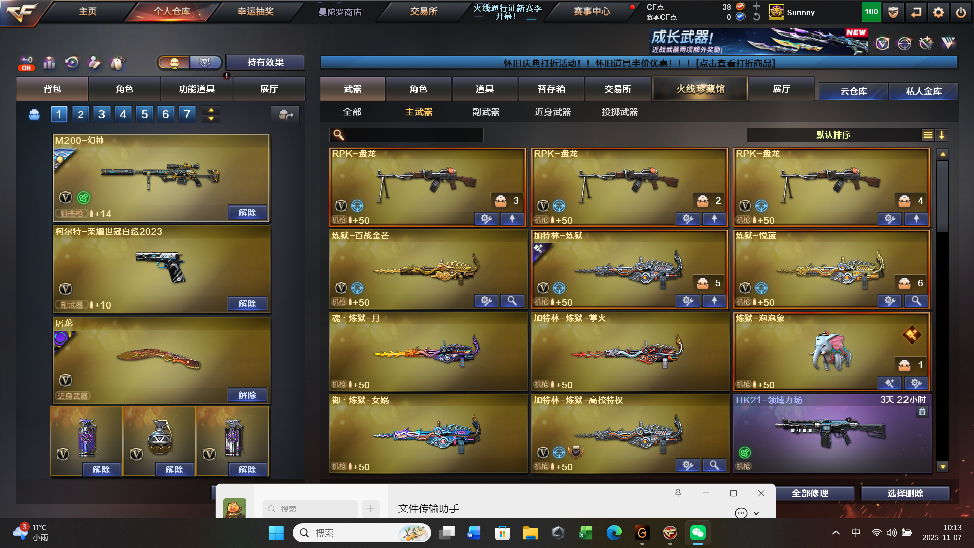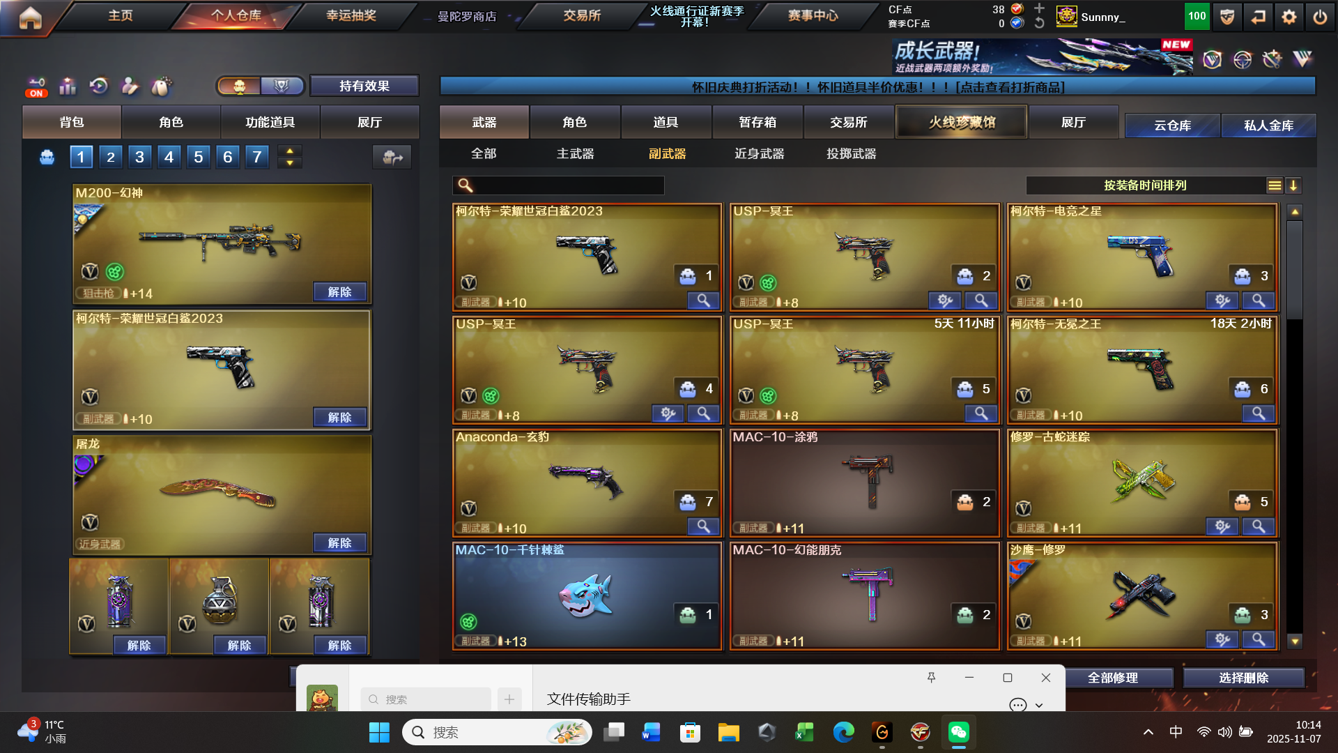 爆破可用传说星骇,生化可用荆棘,(3️⃣大背包自由切换)星神双皮三件套,裁决双皮三件套,Qbz双三件套,幻神双皮,各类热门武器,道具都有,音效卡有的武器自己看看是否装上了,四防角色多个个(包括1️⃣个5️⃣防角色)基础道具全有,希望各位租友们善待我的账号,号主在此谢谢大家了;柯尔特-荣耀世冠白鲨2023,炽芒蝶刃,传说星骇,妮妮,RPK-盘龙,QBZ03-金色蔷薇,G36C-幻影,