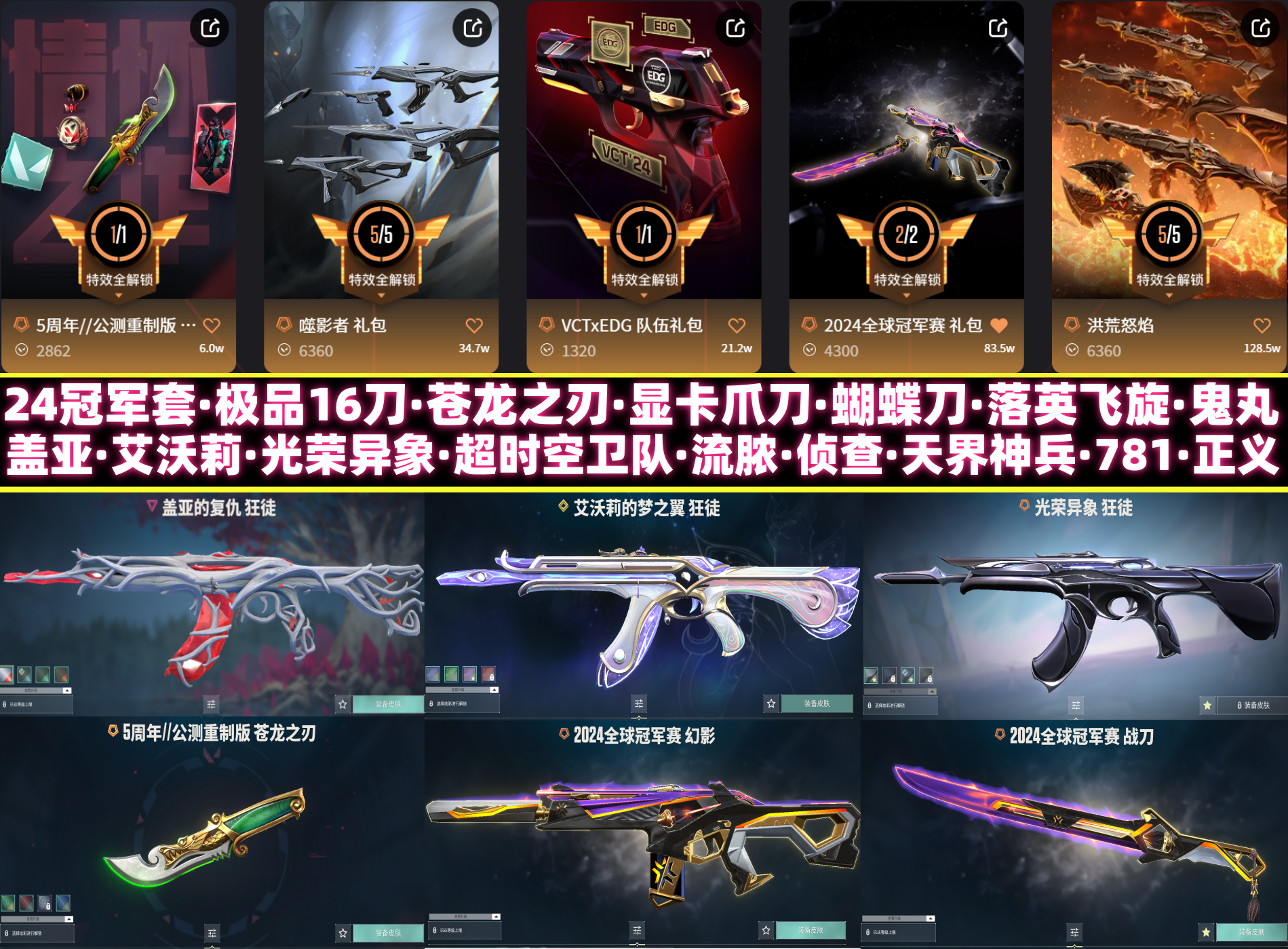 7万5库存153皮肤⚡24冠军套⚡极品16刀苍龙之刃爪刀战刀⚡盖亚混沌光荣异象艾沃莉超时空⚡奇点正义