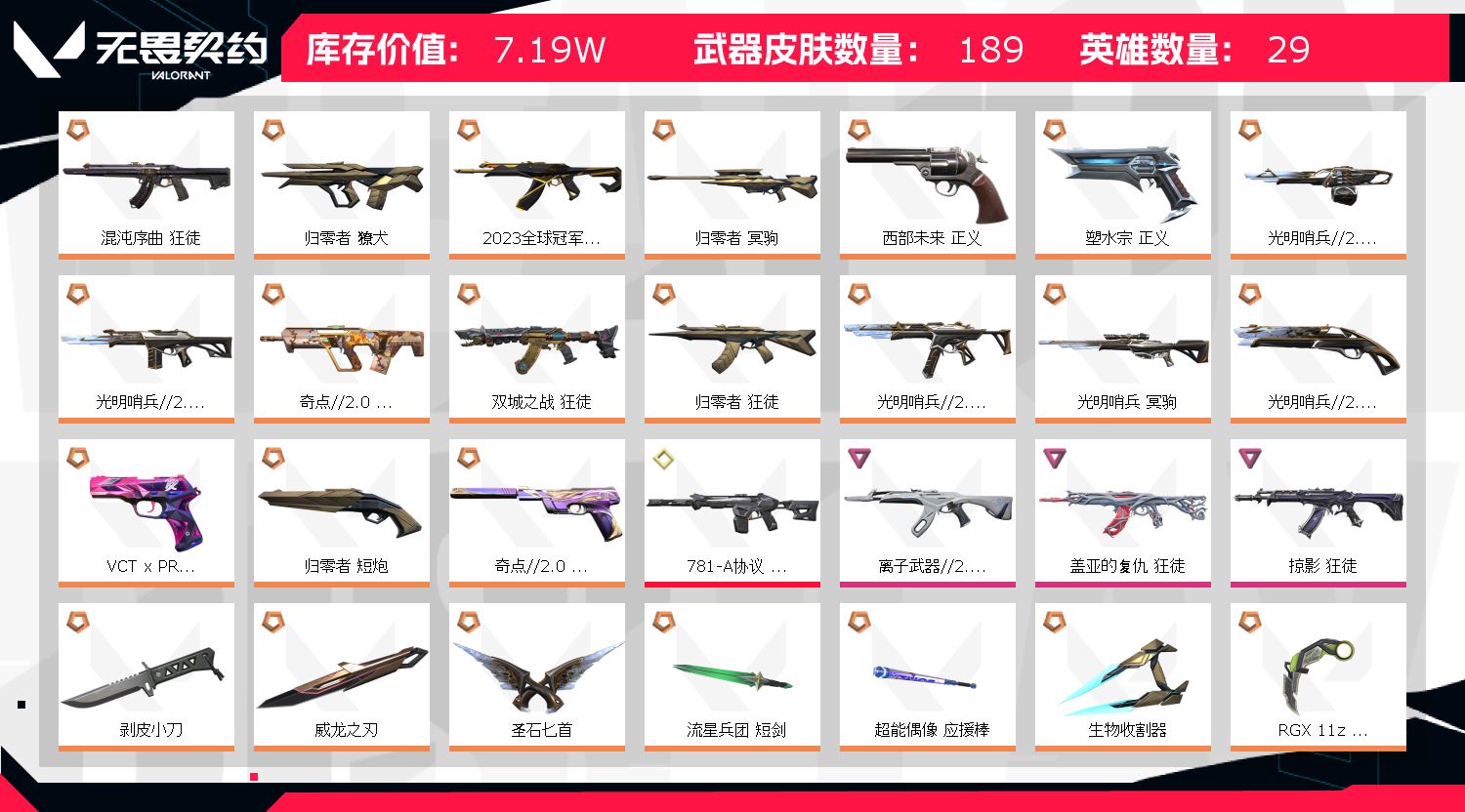 首页 > 租号大厅 > 无畏契约-wegame > wegame/wegame > 特效拉满毕业皮齐全⚡极品19刀皮⚡166枪皮5套装⚡RGX剥皮威龙蝴蝶刀⚡盖亚混沌23冠军紫金狂徒⚡
