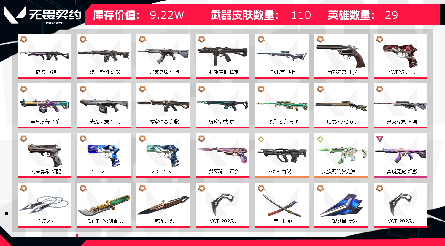 首页 > 租号大厅 > 无畏契约-wegame > wegame/wegame > 9.2w库存,赛季更新前铂金3,租号前请先看看号主描述