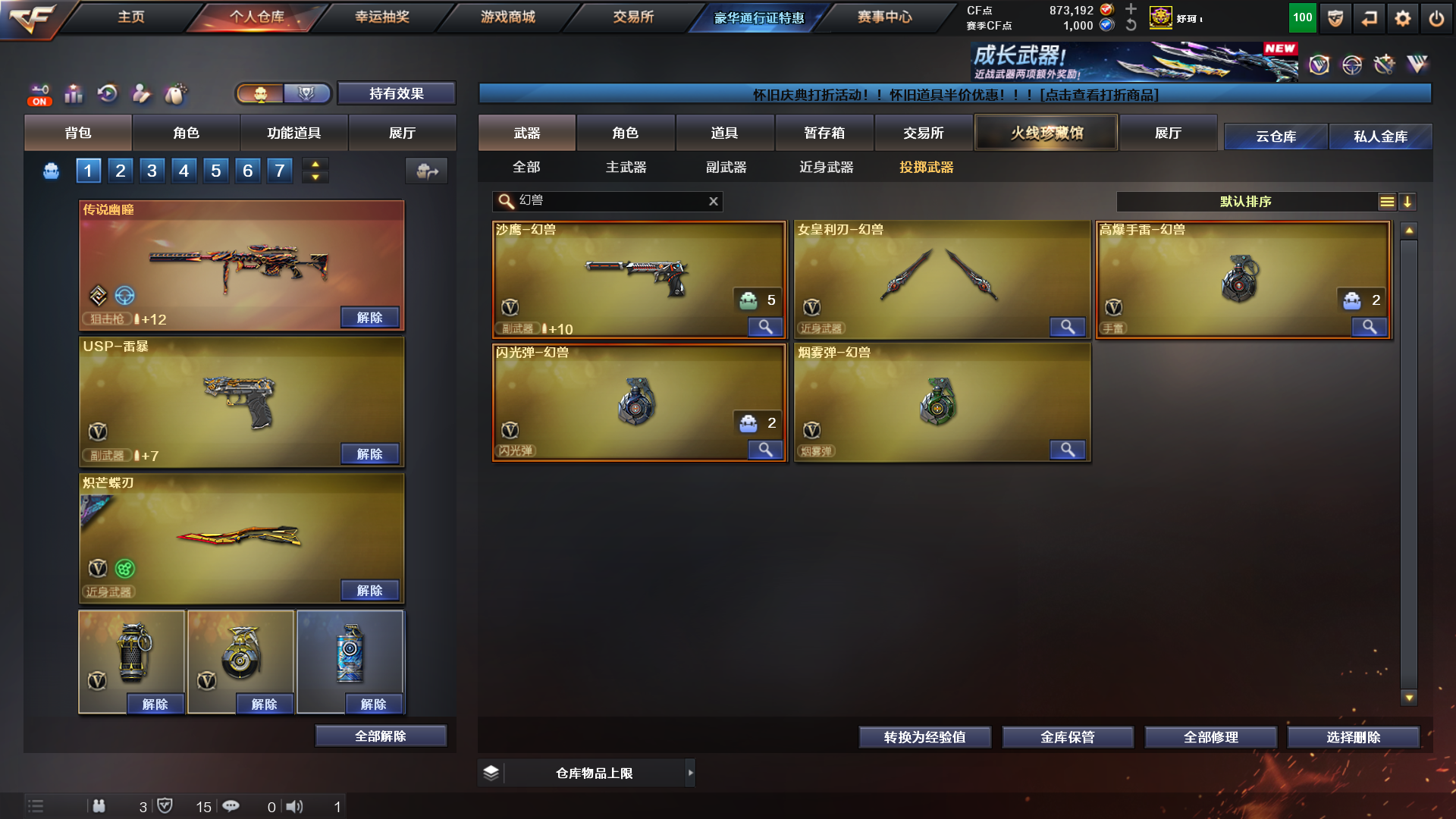 幻兽套✅超核名片金色ID✅白虎常旭三件套幻神yzk三件套✅双小刀幽冥✅小狮子✅7柯尔特冥王✅超核至尊