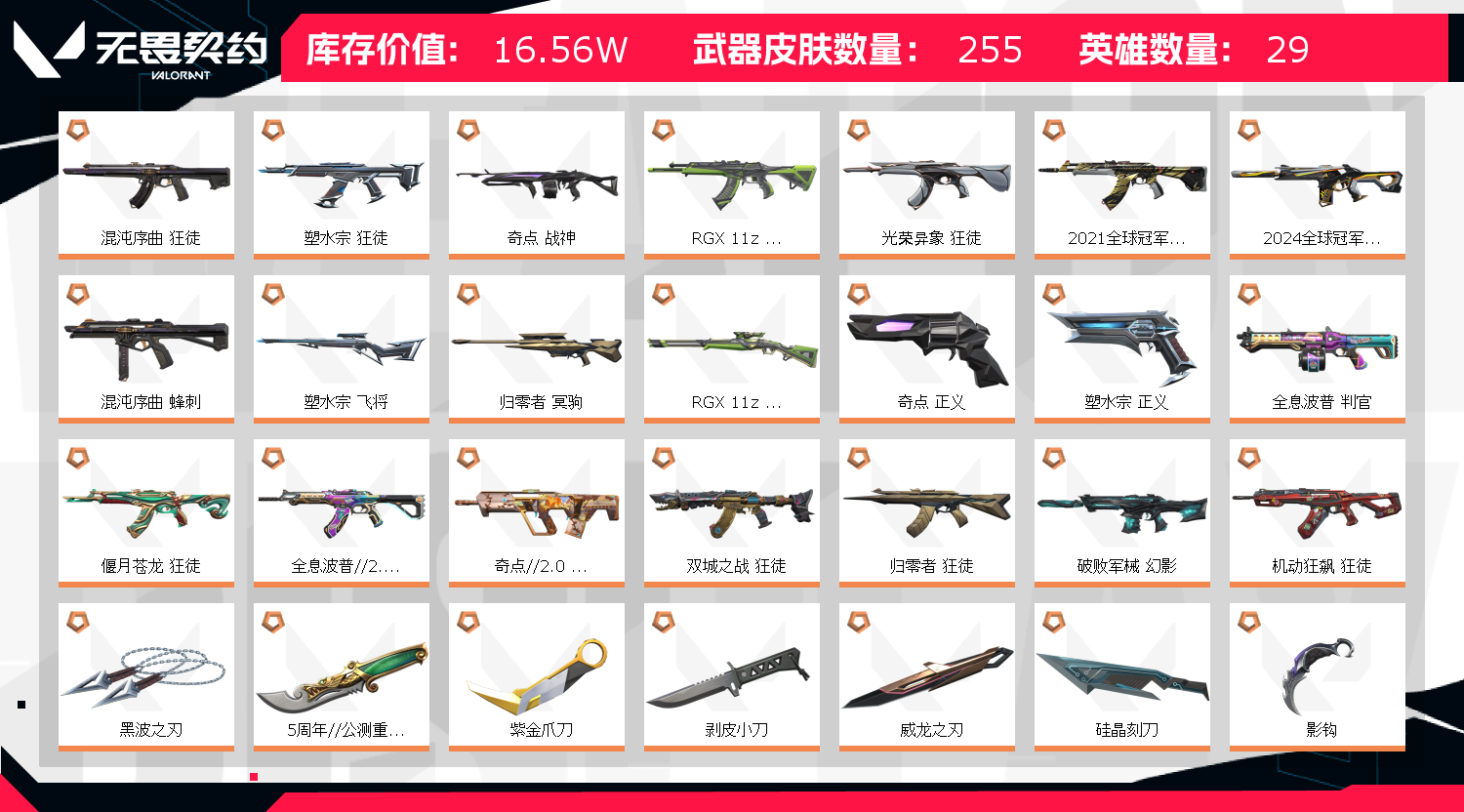 • 皮肤资产价值: 165560