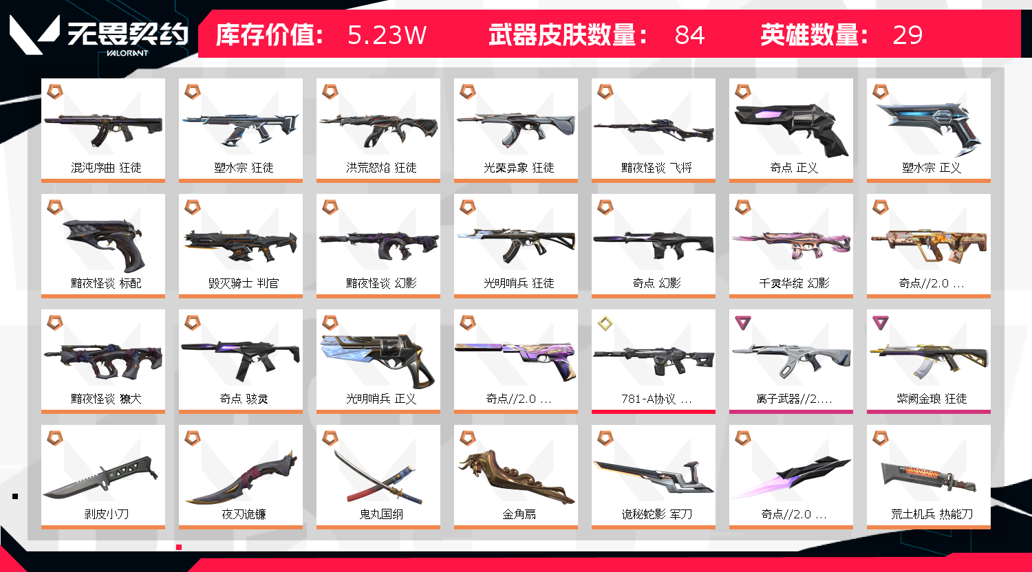 • 武器皮肤数量: 84