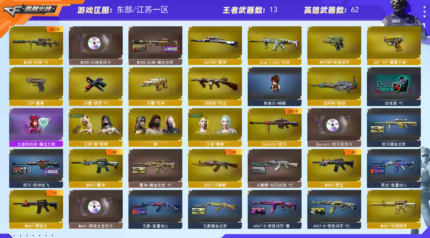 • 游戏区服:穿越火线 / 电信区 / 江苏一区